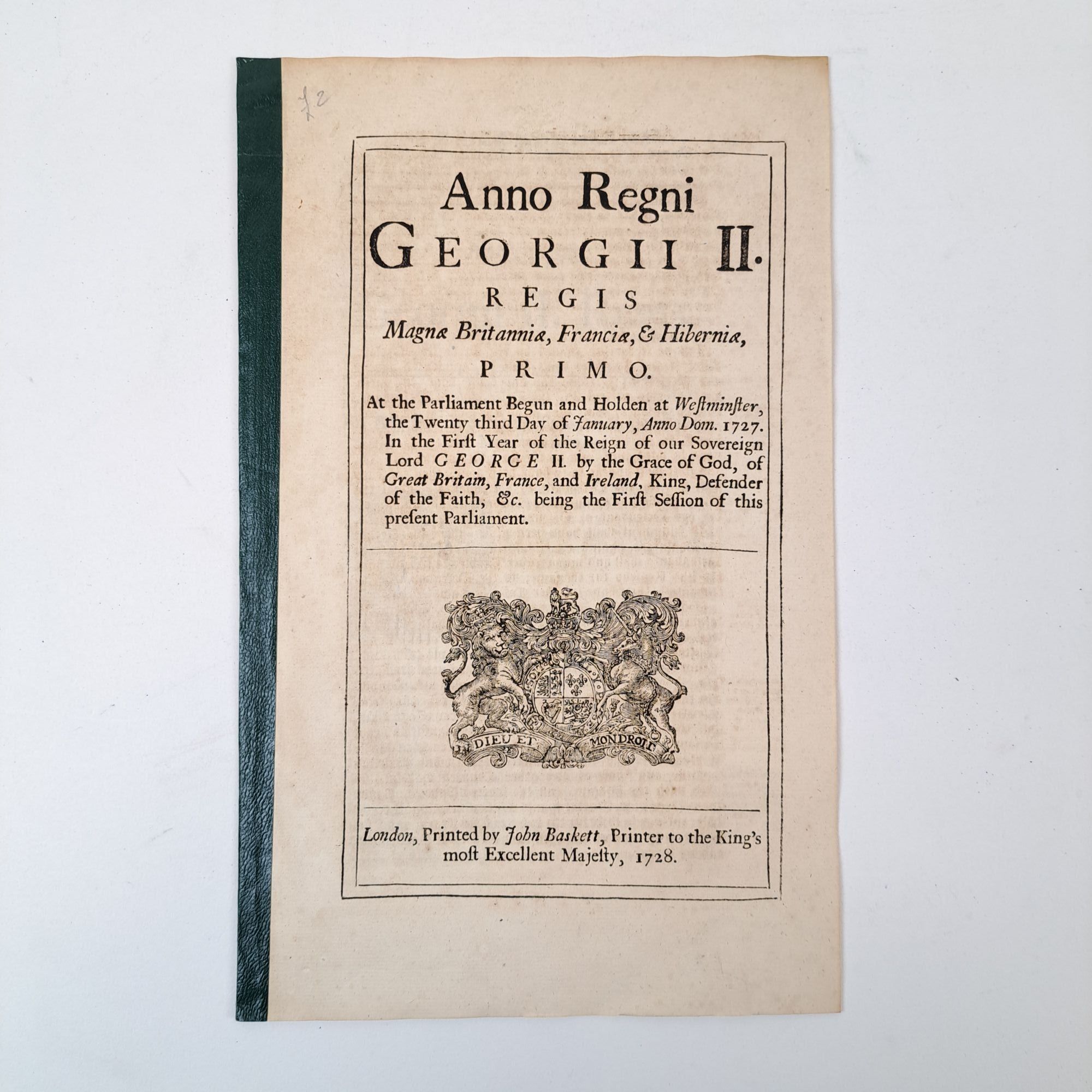 ANNO REGNI GEORGII II REGIS MAGNÆ BRITANNIÆ, FRANCIÆ & HIBERNIÆ PRIMO [...]