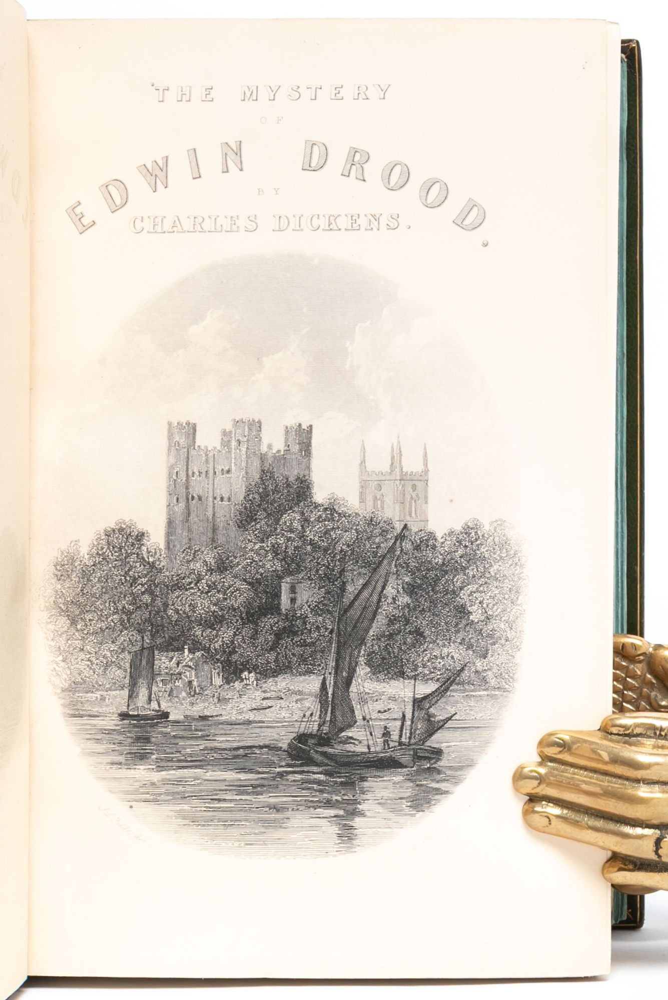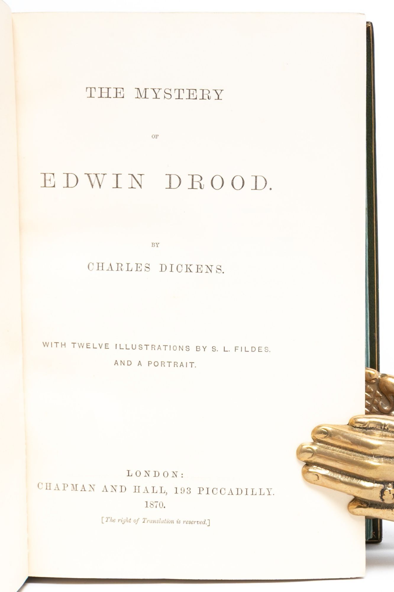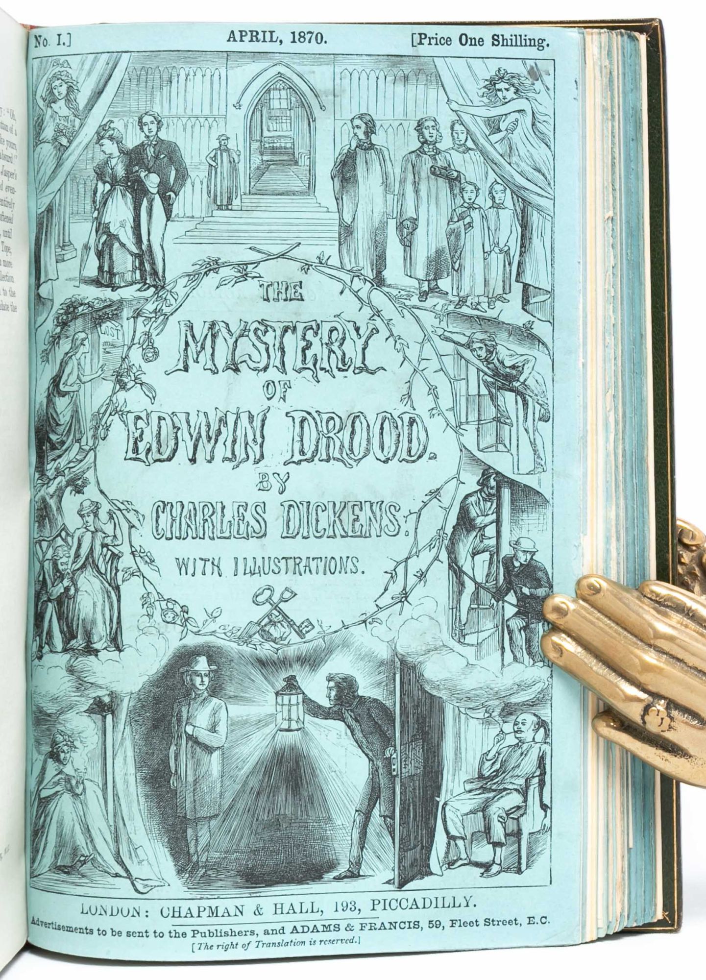 “When Dickens died on June 9, 1870, he had completed only enough of his manuscript to make up six installments, leaving unfinished a work which had commanded the widest attention for its opening numbers, and which promised to be one of his most effective and popular books. Although only three parts had been issued prior to his death, publication of the work continued, and on completion with Part 6 of all available material, the vast army of readers was left high and dry as to ‘The Mystery.' The Author during the writing of the story never disclosed the ultimate development of his plot” (Hatton and Cleaver).