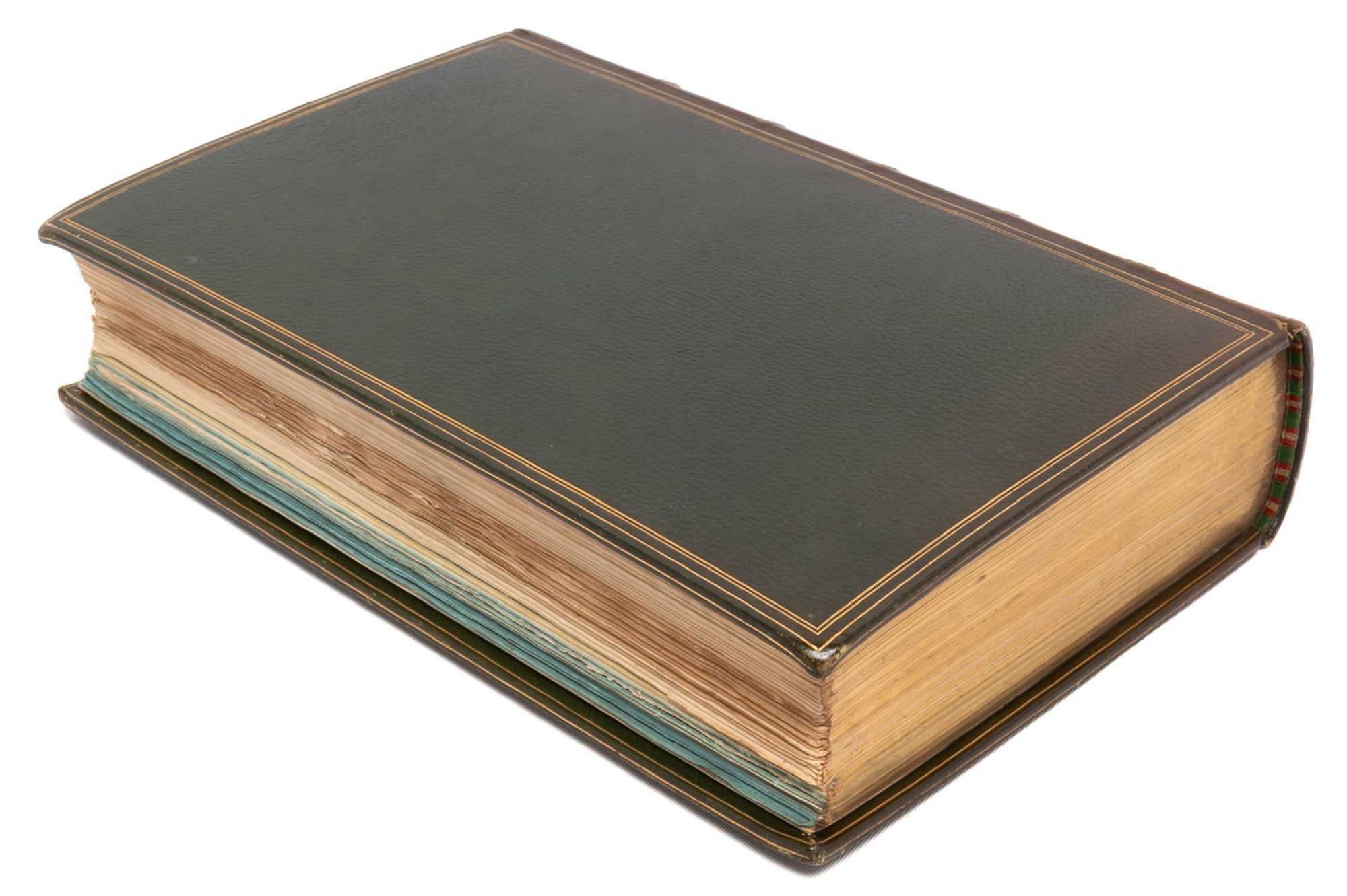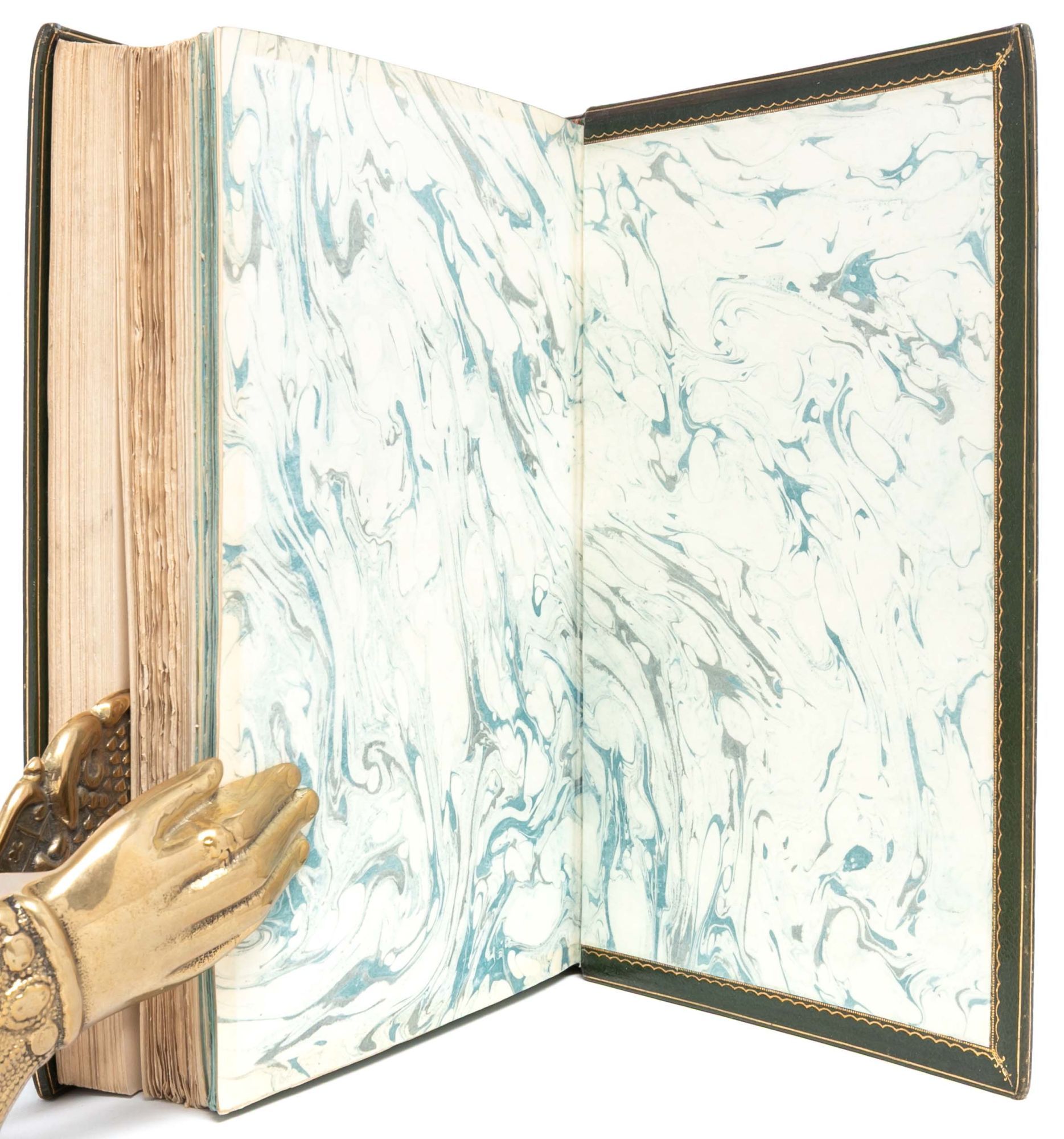 Bound by Zaehnsdorf ca. 1900 in full green morocco, covers ruled in gilt, spine with five raised bands, decoratively stamped and lettered in gilt in compartments, marbled endpapers, top edge gilt, others uncut. With the engraved bookplate of celebrated bibliographer and collector Charles Plumptre Johnson on front paste-down. Spine faded to olive green. Housed in a brown cloth slipcase. A Fine, clean example.