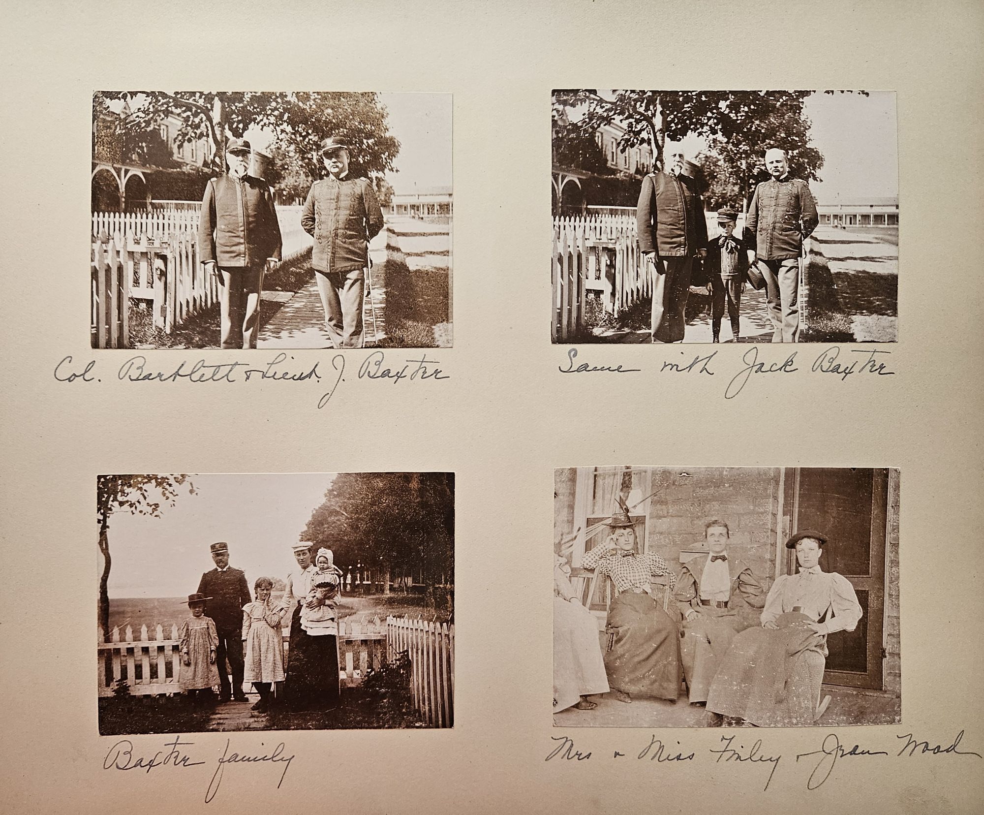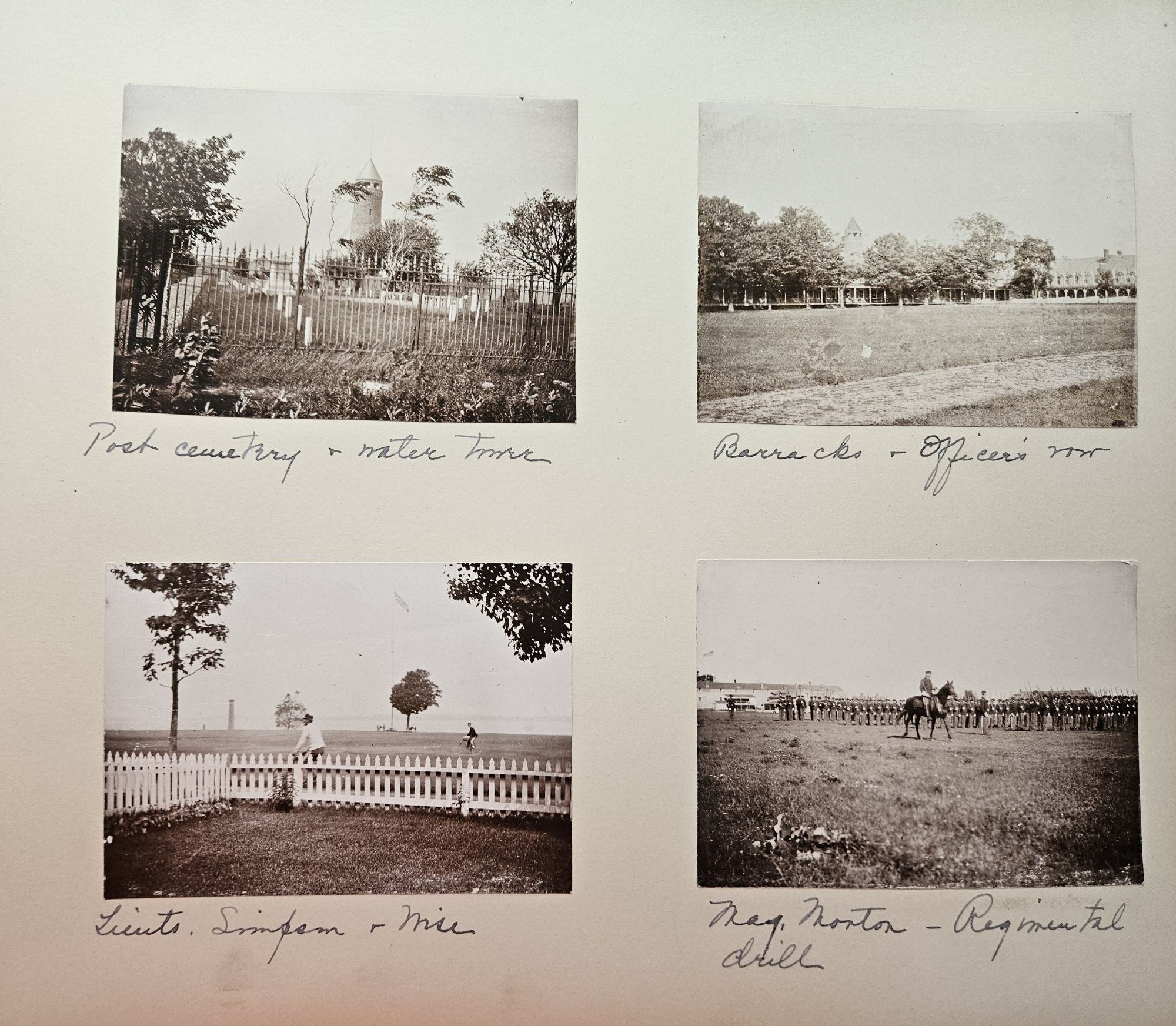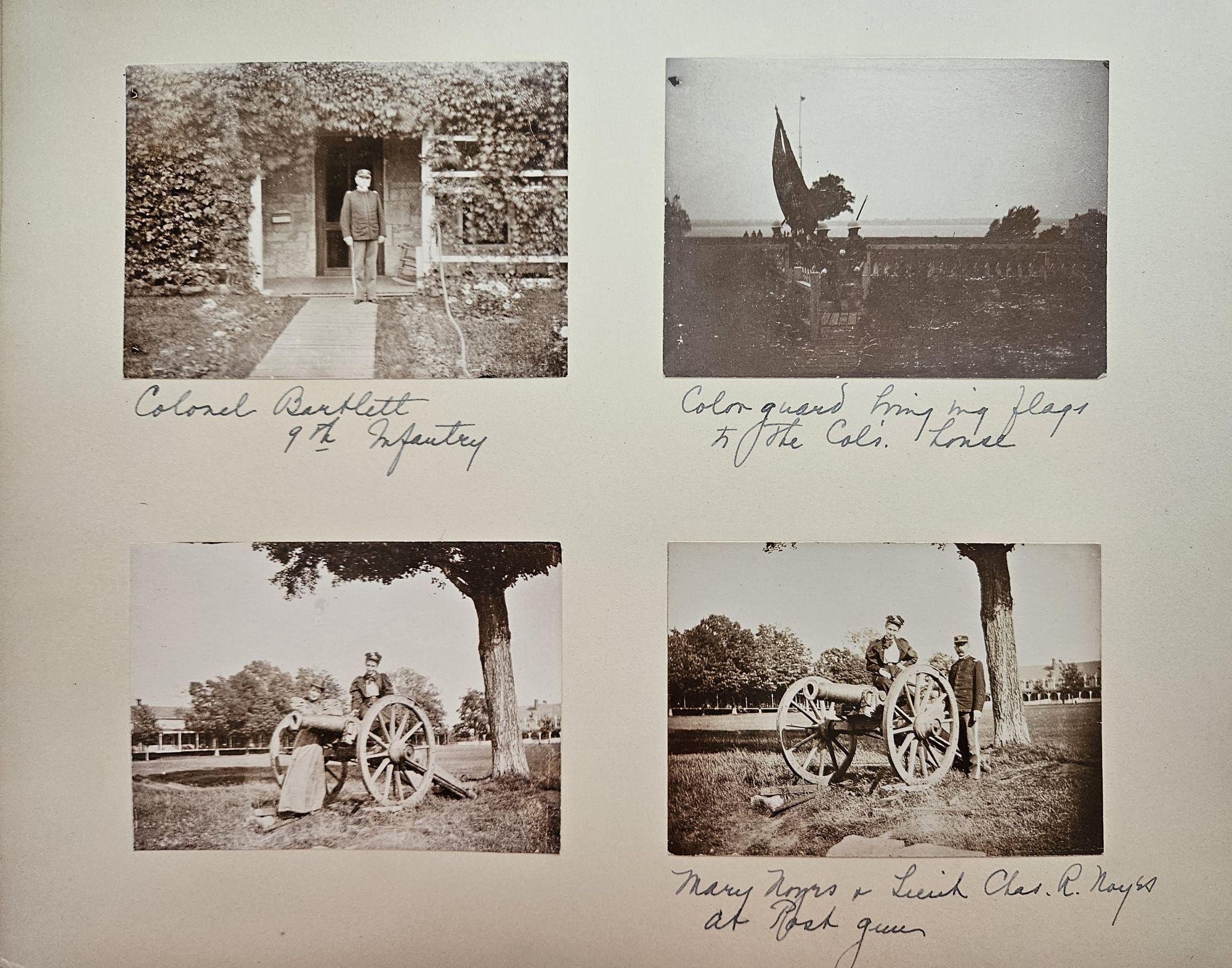 United States, 1896. 182 photographs mainly measuring 3 x 4 inches with some larger, mounted on heavy cardstock in a photo album. Some with manuscript captions. Several pages of album detached; slight damage and wear to pages and damage to binding; photos excellent to Near Fine. Overall excellent.. A photo album documenting a number of locations in the United States between 1895 and 1896, with most photos taken in New York and Virginia. Many of the New York photos are of military activities and buildings at Madison Barracks in Sackets Harbor. The barracks were built near the end of the War of 1812 and remained active through World War II; captioned subjects include Colonel Charles Bartlett, Lieutenant Charles R. Noyes, and the mess hall, officers’ quarters, and hospital.