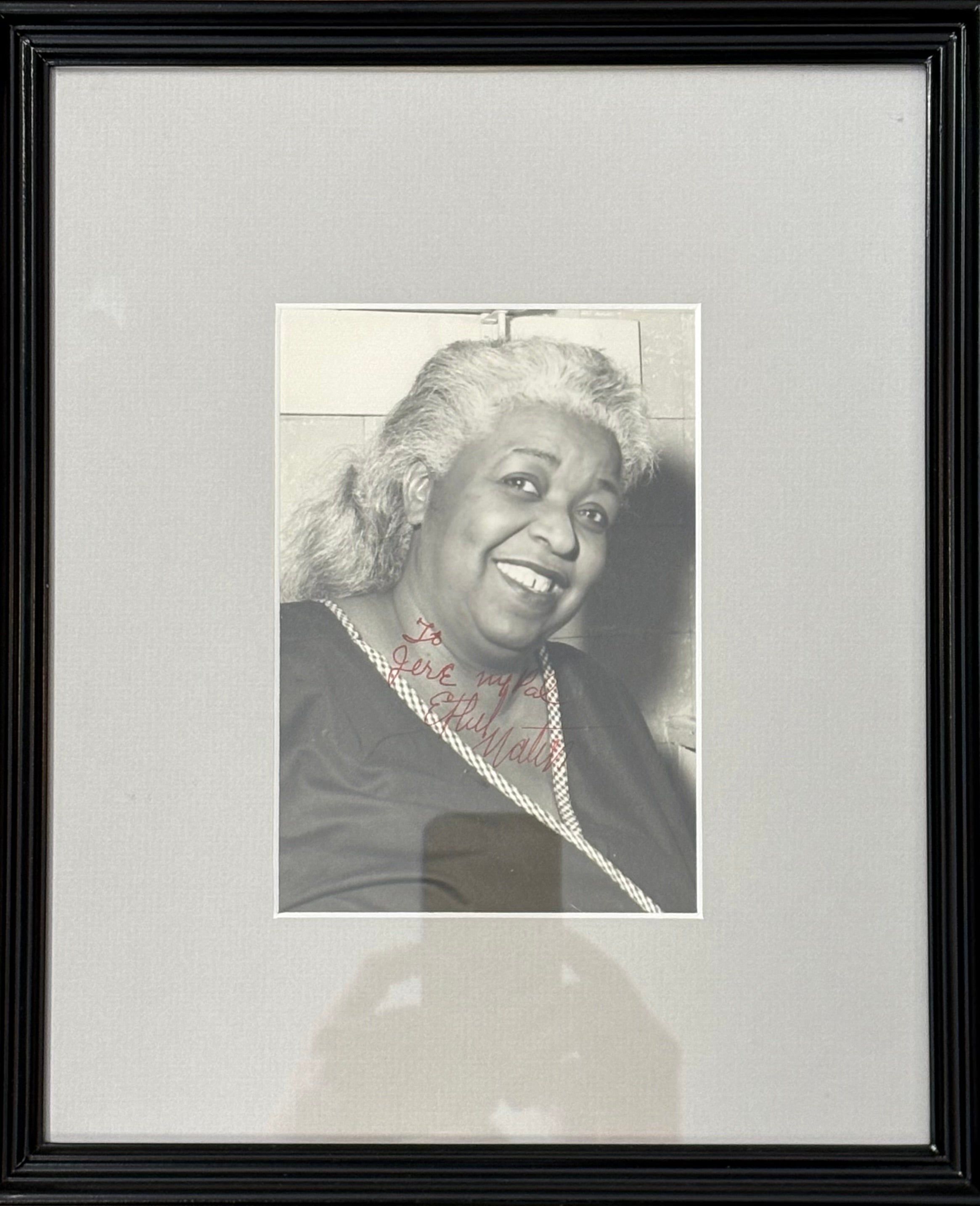 framed. near fine. Black and white photograph signed by American signer and actress Ethel Waters. Circa 1965. Please inquire for more information.
