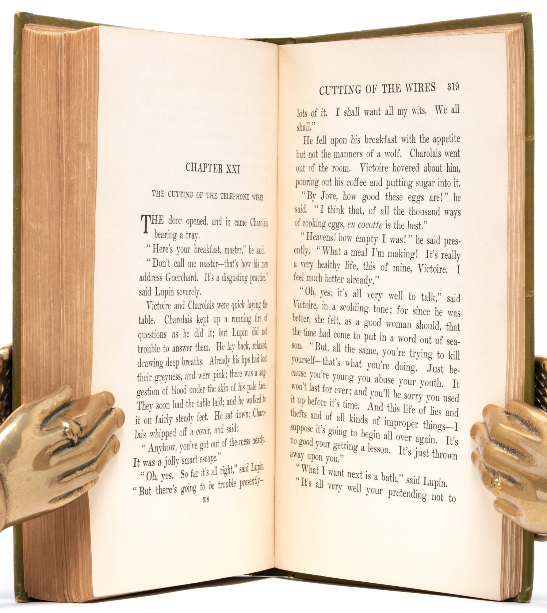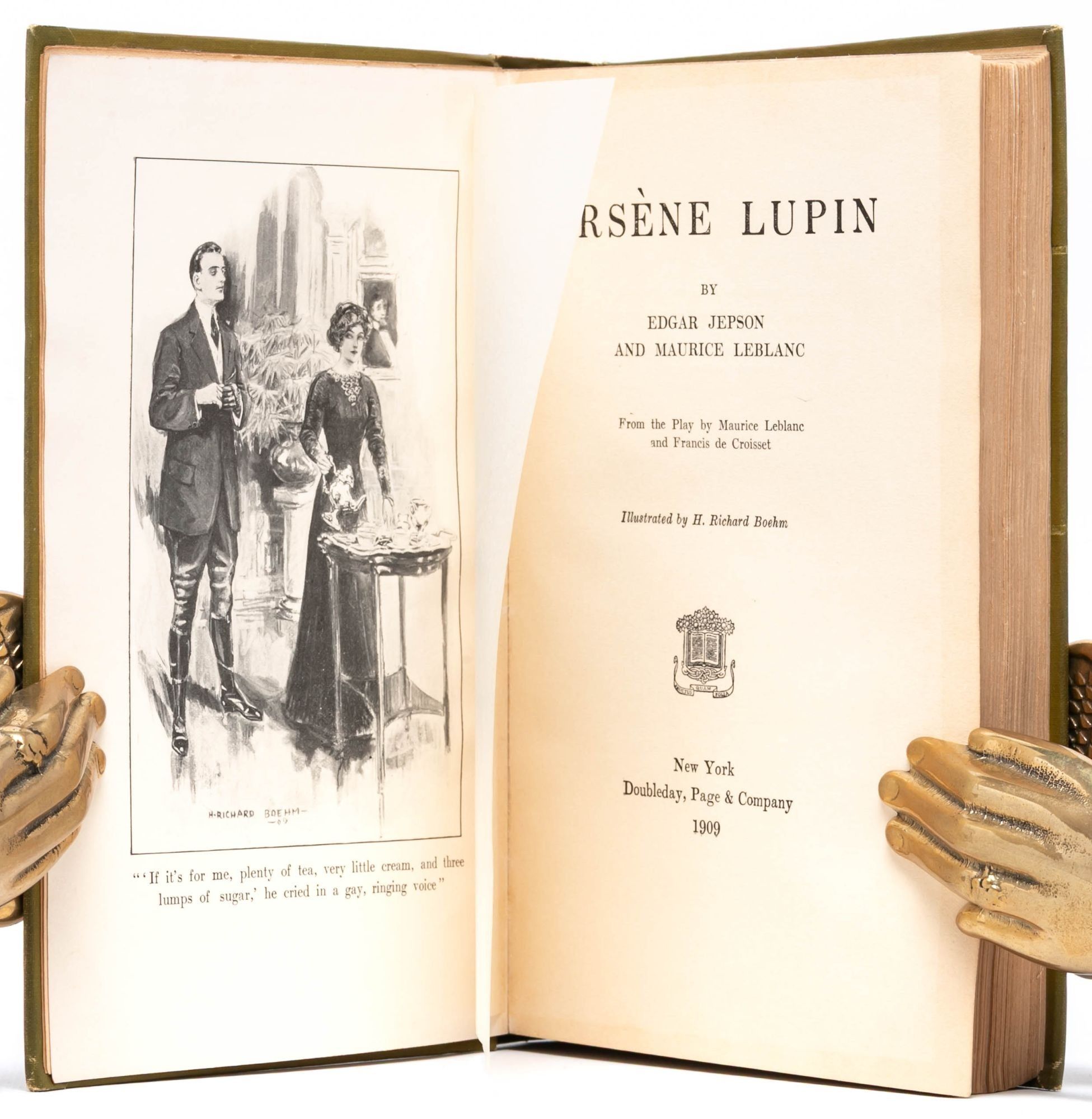 The story of a gentleman burgler and master of disguise, first appearing in the French magazine Je Sais Tout in 1905. Containing nine stories about Lupin's capers, the author Maurice Leblanc ran afoul of Sir Arthur Conan Doyle by having the English detective Sherlock Holmes (with later printings calling him Herlock Sholmes) appear in the seventh story. Now made popular by the streaming series Lupin. Near Fine.