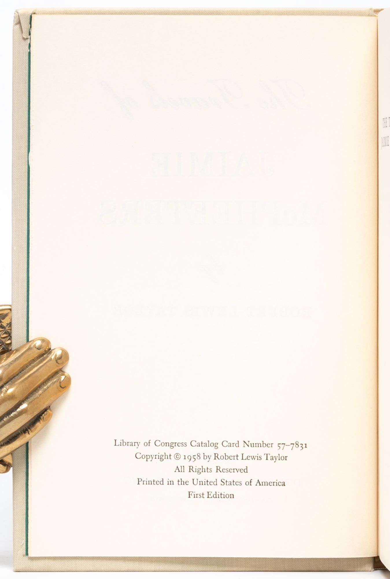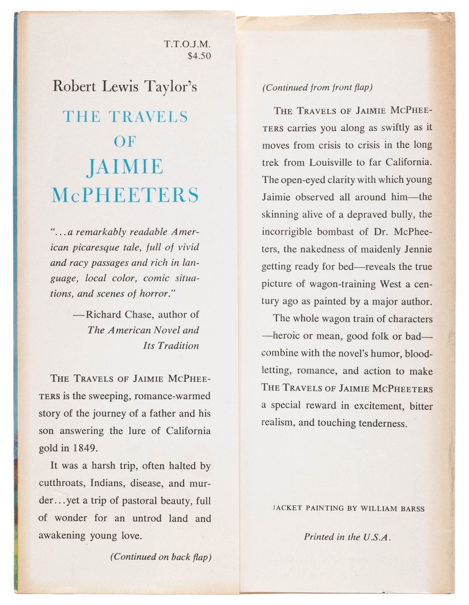 Set during the Gold Rush and reminiscent of Twain's Tom Sawyer, The Travels of Jaimie McPheeters tells the story of the the titular Jaimie, who accompanies a wagon train on the dangerous journey from St. Louis to California. The novel, which won the Pulitzer Prize for Fiction in 1959, was adapted into a television miniseries starring Kurt Russell in 1963. Fine in Near Fine dust jacket.