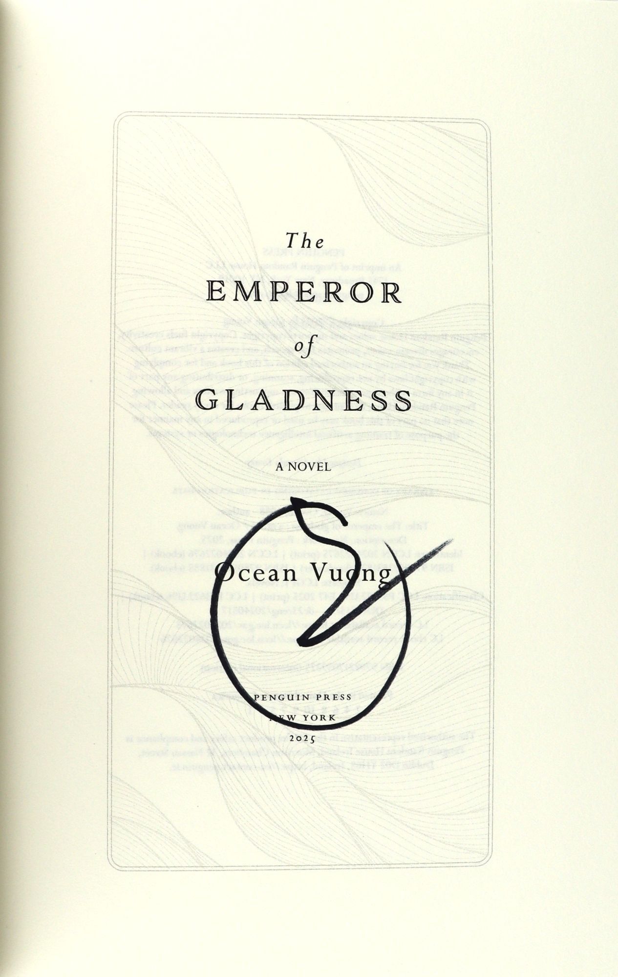 New York: Penguin Press, 2025. Very Good +/Very Good +. New York: Penguin Press, 2025. First Edition with full numberline. Octavo (24.7cm); illustrated dust jacket with $30.00 price intact; boards in wine cloth with copper lettering to spine, [xii],402pp. Jacket is crisp, with some bumping at head of spine. Boards sturdy and square with matching bump to head and nudging to tail. Binding is sound and pages unmarked.
