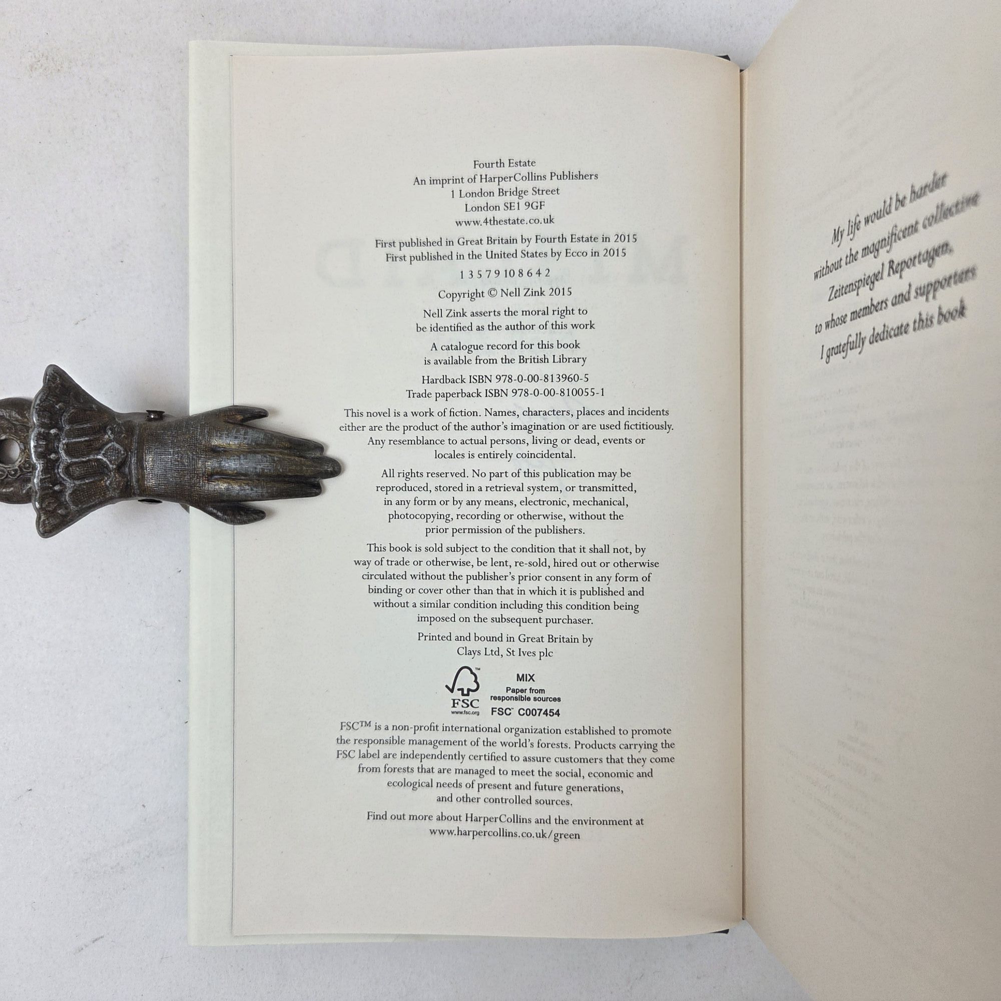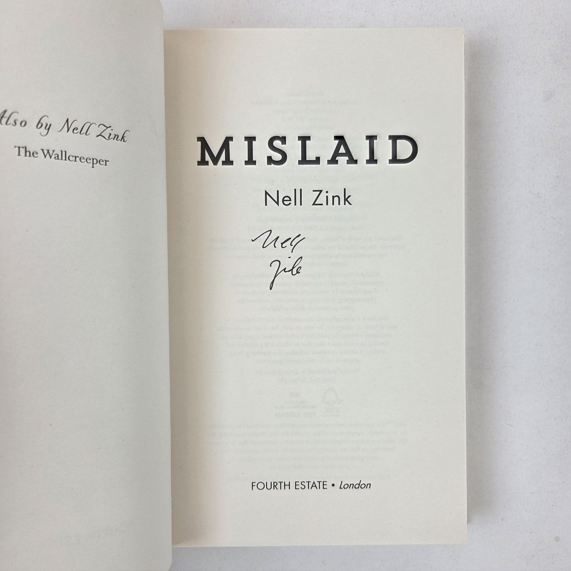 London, UK: Fourth Estate, 2014, 2015. First Edition, First Printing. Hardcover. Octavo, 2 Volumes. In Very Good condition with Very Good condition dust jacket and Very Good condition slipcase. Yellow slipcase with black lettering, has small dent along head edge of open end. Spines are white with yellow, black, and red. Dust jackets have mild shelving wear along head joints. Boards of MISLAID have mild shelving wear along spine head. Both volumes signed flat on title page by Nell Zink. Shelved Room C overflow. 1404412. Special Collections.