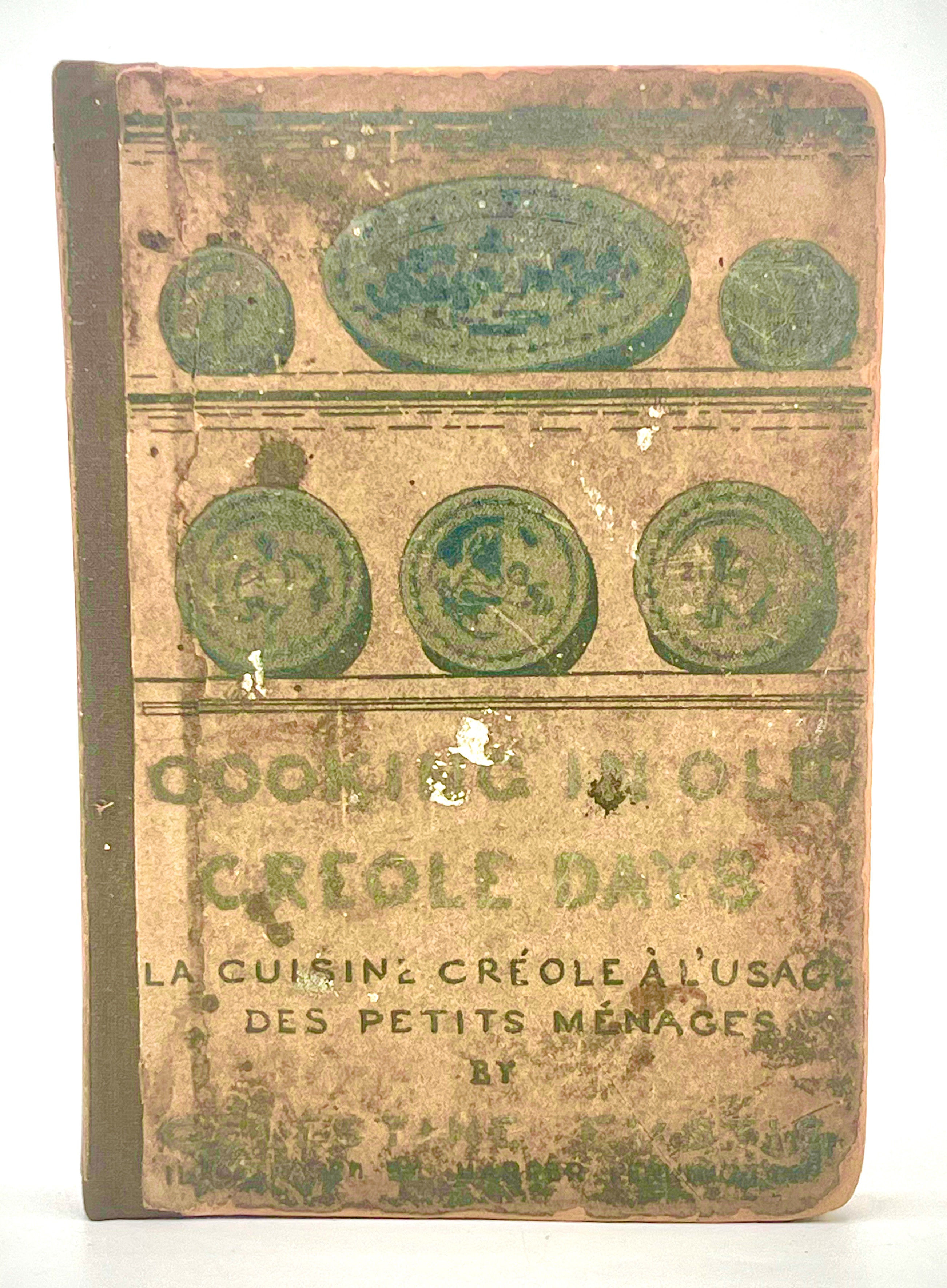 New York: R. H. Russell, 1904. First Edition - Second Printing. Hardcover. Gray pictorial paper covered boards, illustrated in white and blue, brown cloth spine. Good. Pennington, Harper. 112 pages. 24.5 x 16.5 cm. Frontispiece and eight full page illustrations with accompanying words (in French) and music on tissue guards. A handsome book offering an excellent overview of Creole cooking in and around New Orleans at the beginning of the 20th century. It is considered one of the classic expositions of this cuisine. Illustrations by Harper Pennington portray African American street vendors - tissue guard displays the musical notes and songs they purportedly sang while working. Eustis, a privileged and wealthy white woman, introduced the regional (African American) culture and cuisine of Louisiana to the elite of Washington at the turn of the century. The book is bilingual with a larger section of recipes in English, the rest in French. Expertly rebacked with original spine, and new end papers. Interior toned. Boards heavily rubbed.