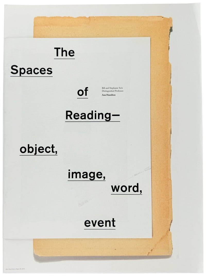 Documentation of a course taught by Ann Hamilton in which the students explored "relations between reading, writing, and making and the places of and for test composition and processing in material practices.