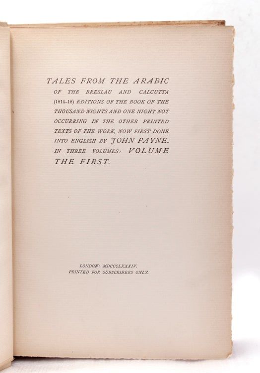 Tales from the Arabic of the Breslau and Calcutta (1814-18) Editions of the Book of a Thousand Nights and One Night Not Occurring in the Other Printed Texts of the Work, Now First Done into English