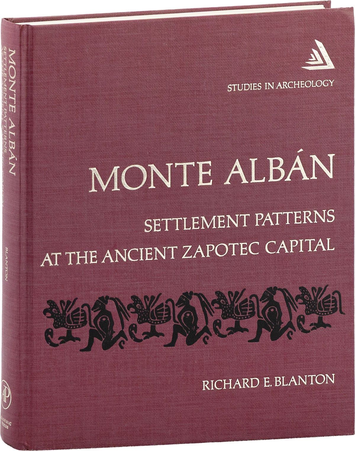 New York: Academic Press, Inc, 1978. First Edition. Monte Alban Archaeological and Topographic Map laid in. Octavo (24cm); burgundy cloth-covered boards with titling and decorations stamped in gilt and black on spine and front cover; xxvi,451,[3]pp; black-and-white photographic halftones and map illustrations. Studies in Archeology series. This copy is from the library of noted poet, translator, and anthropologist Nathaniel Tarn (1928-2024), with his pictorial bookplate to front pastedown. Map of Monte Albán is present and complete. Trace soil to edges of textblock; Very Good+. Explores the origins and history of Monte Albán, with a focus on population distribution, the main plaza and site subdivisions, accessibility, and collapse. [87489].