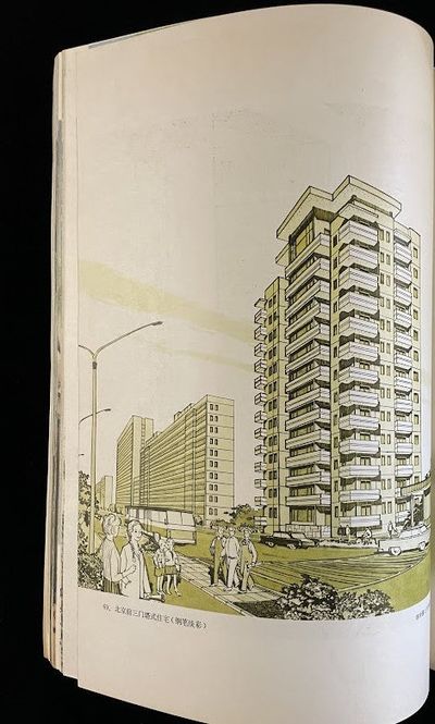 Baiwan Village (Beijing): China Architecture & Building Press, 1979. Presumed First Edition. Soft cover. Near Fine. Stiff, glossy paper covers, measures 10.25 inches (26 cm) x 14.5 inches (37 cm), with 22 architectural drawings, almost all full page and mainly in full color. We could find no record of this publication outside of China. The text is entirely in Chinese. The Google translation of the text on the fifth photograph is as follows: "Architectural drawing is an important means for architectural designers to express their design intentions, explore design plans, and improve their artistic accomplishments. In their design practice, many architectural designers have drawn a large number of architectural drawings, and they also often do architectural sketches. This album is selected from the drawings sent to our agency by many architectural designers and art workers across the country. After our agency issued a notice to collect architectural drawings in March this year, many architectural designers and teachers from the Department of Architecture of colleges and universities responded enthusiastically and sent more than 1,700 works. Our agency invited relevant experts to form an architectural painting selection committee to evaluate these works. The selection committee was composed of the following comrades: Bai Zuomin, Qi Kang, Zhu Ying, Hua Yiyu, Du Rujian, Wu Liangyong, He Zhenqiang, Zhang Kaiji, Zhong Xunzheng, Xi Xiaopeng, Huang Yuanqiang, Peng Yigang, and Dai Nianci. After repeated evaluation, more than 200 excellent works were selected. When selecting, the proportion of the number of works of each type of painting was appropriately considered. This album will be published on the eve of the 30th anniversary of the founding of the People's Republic of China. We hope that this album can reflect the great achievements of my country's socialist construction from one aspect, and at the same time, we also hope that this album can play a role in exchanging architectural painting techniques and improving the artistic quality of architectural designers. Editorial Department of China Architecture & Building Press, September 1978