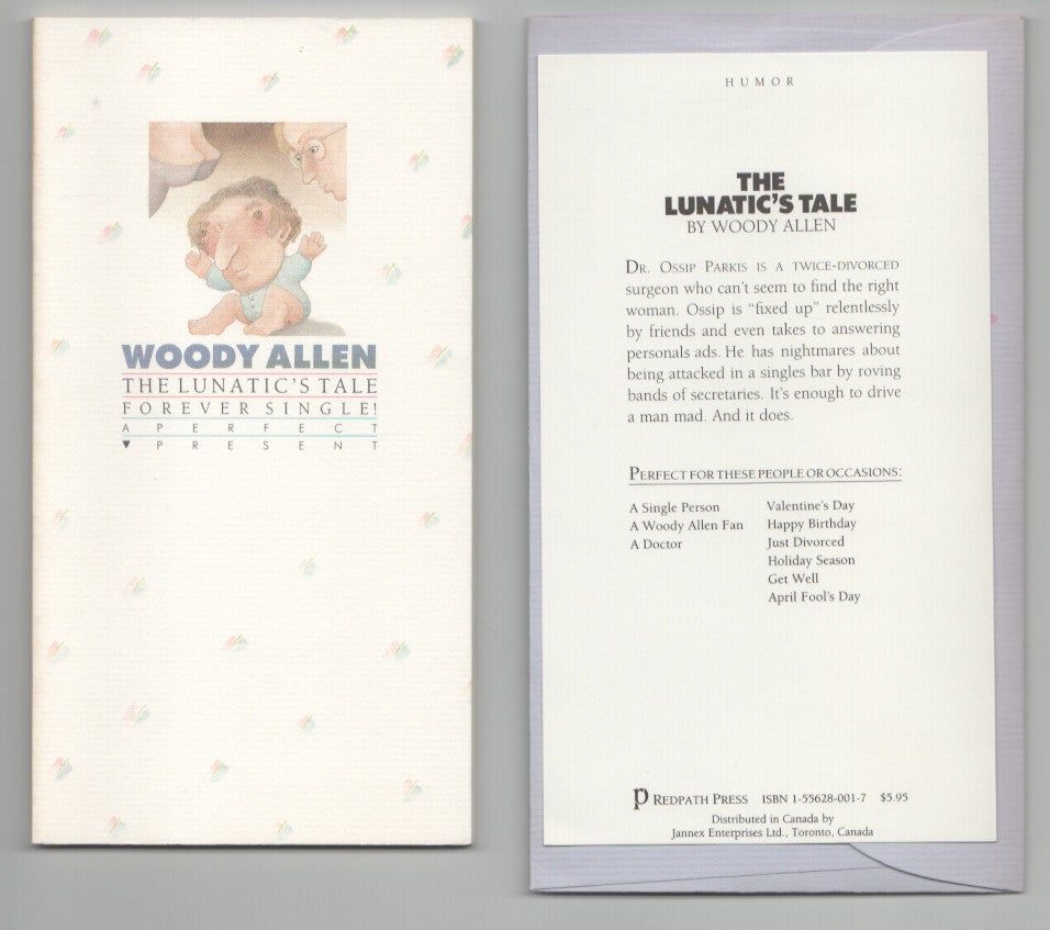 Minneapolis, MN: Redpath Press, 1986. First edition. Small softcover. First separate appearance of this short story which was previously included in Allen's collection Side Effects. Includes illustrations by Etienne Delessert and design by Rita Marshall. A fine copy in French style wrappers and with fine original envelope, text sheet and the original bag. A fresh copy.