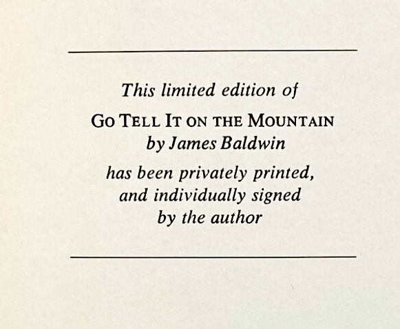 Franklin Center, PA: Franklin Library, 1979. First Illustrated Edition. Hardcover. Fine. Burt Silverman. Bound in full brown decorated leather. The First SIGNED Limited edition of Baldwin's first book with a previously unpublished introduction by the author. Illustrated by Burt Silverman. With the Notes from the Editor.