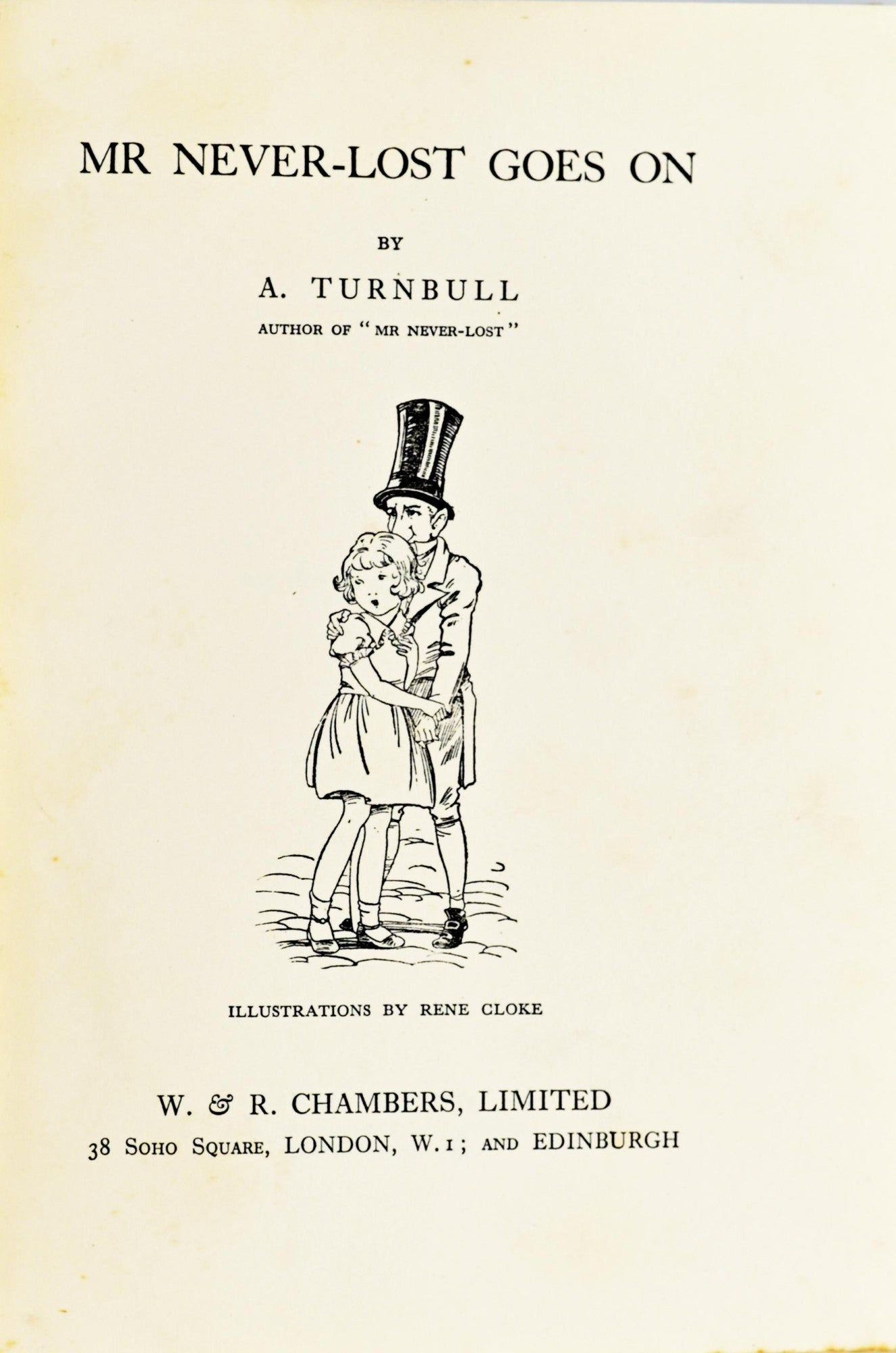 London: W. & R. Chambers, 1934. First Edition. Very Good binding/Good dust jacket. Rene Cloke. Octavo; in the publisher’s turquoise cloth with titling on the spine in blue; 240 pages; with a full color frontispiece and black and white illustrations through out; in an clipped jacket; jacket is a bit soiled with edge wear and some chips; price on the rear of the jacket has been marked with red ink; foxing throughout; with a previous owner’s signature on the front end paper.~~ ~~. Very Good binding / Good dust jacket.