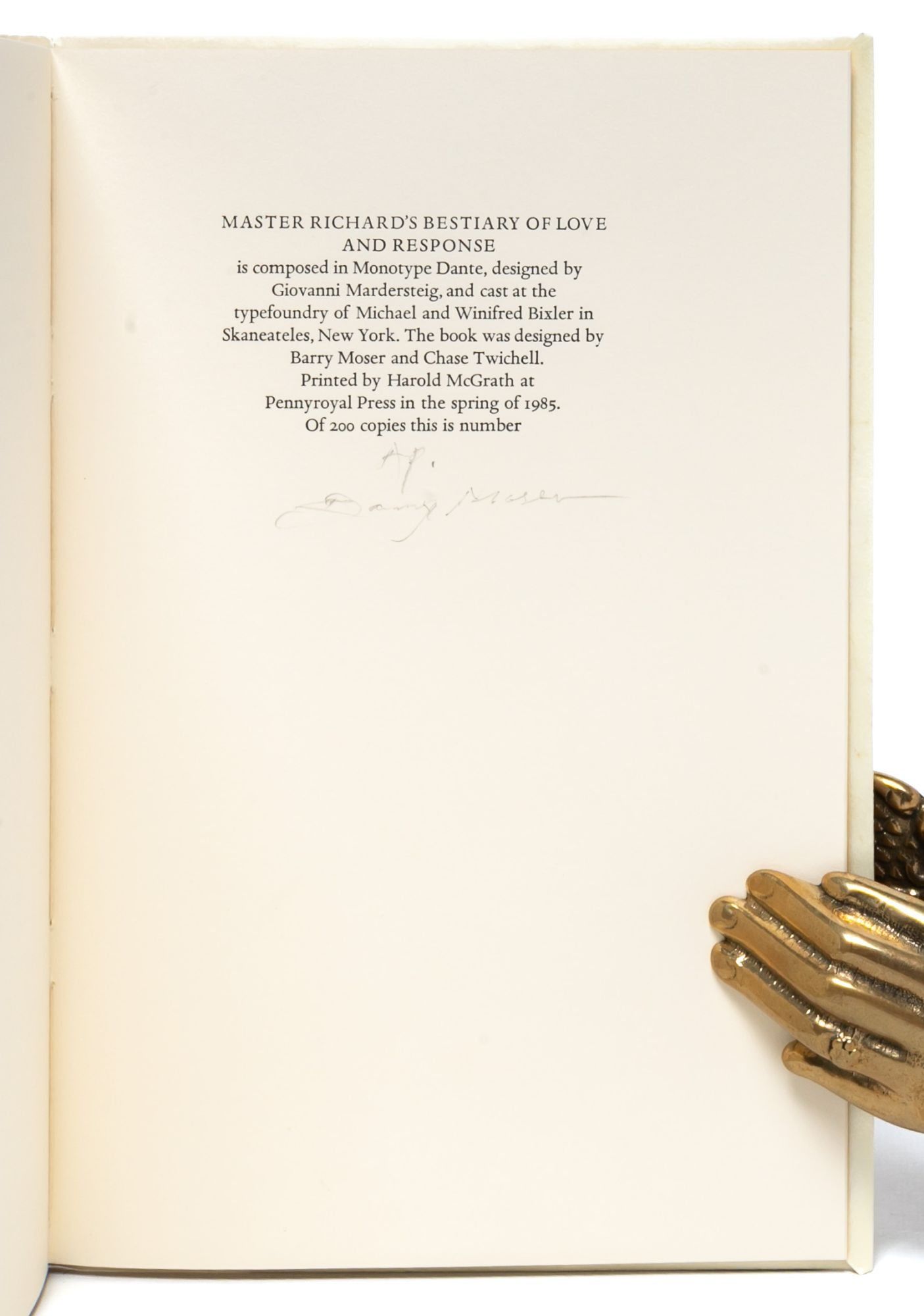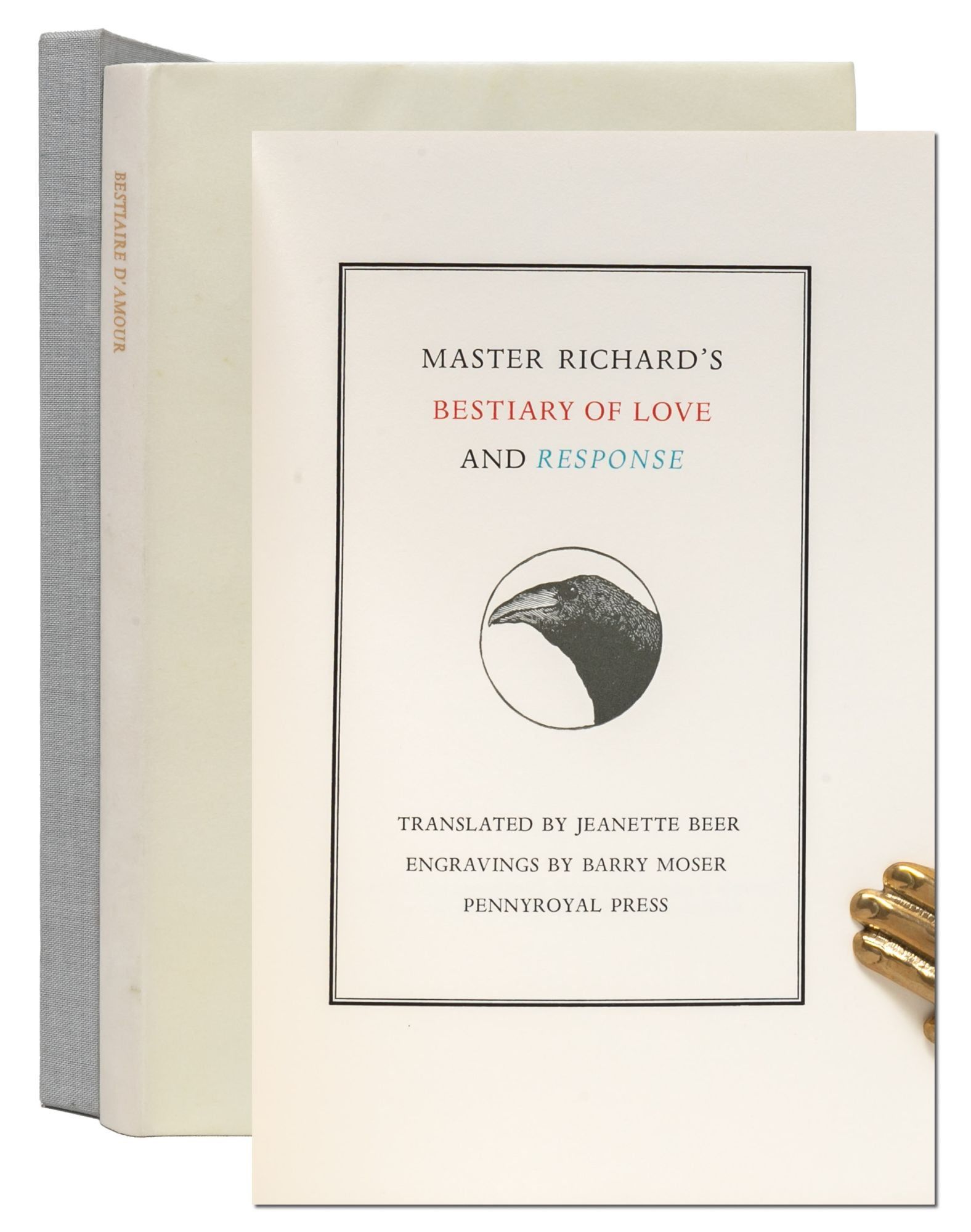 North Hatfield, Massachusetts: Pennyroyal Press, 1985. First thus. Fine. One of 200 copies, this one marked "AP" and signed in pencil by Barry Moser on the colophon. Unpaginated. With forty-six engravings by Moser. Designed by Barry Moser and Chase Twichell and printed by Harold McGrath. Original full vellum. In the original pale blue cloth slipcase with a bit of dampstaining. A Fine copy in the Very Good slipcase.