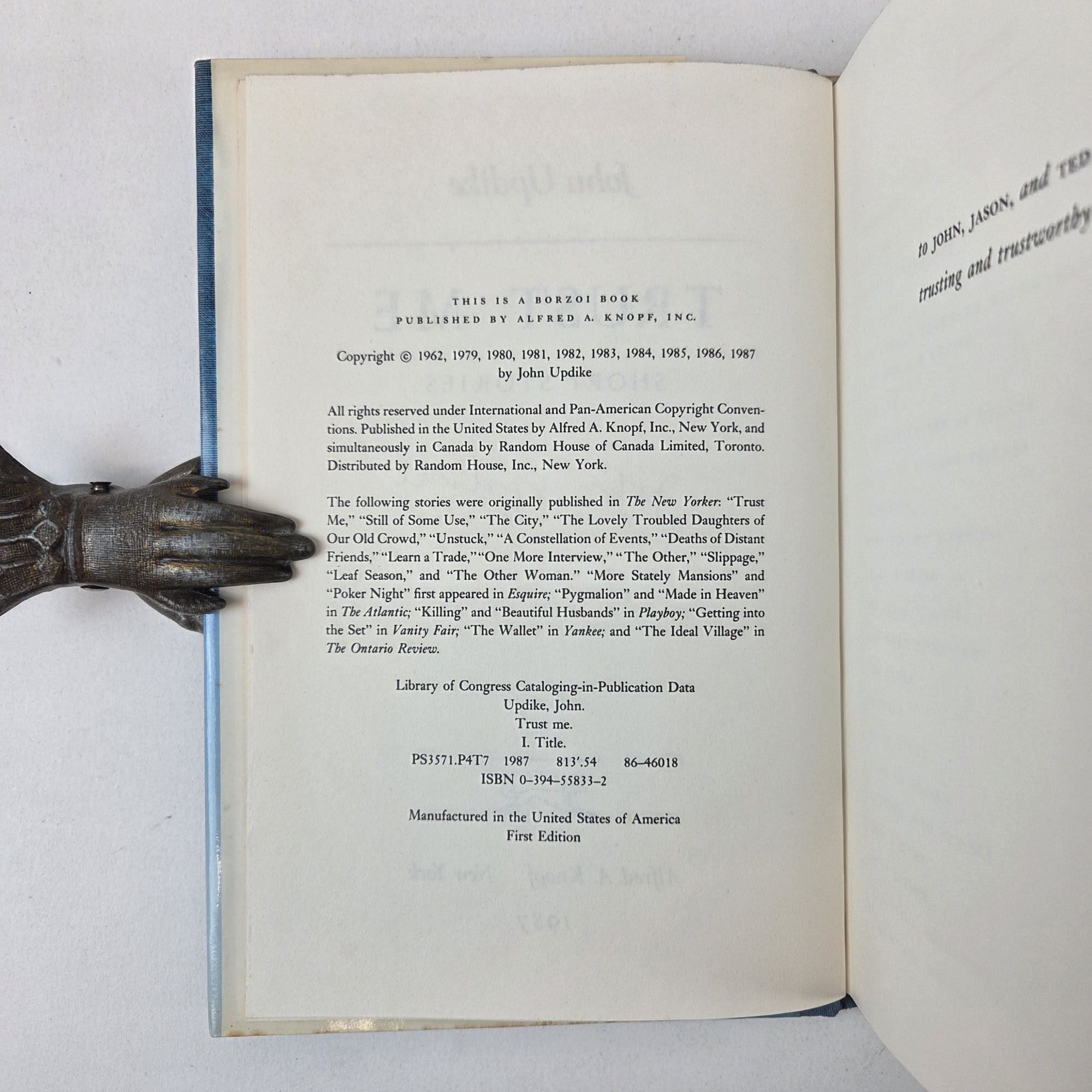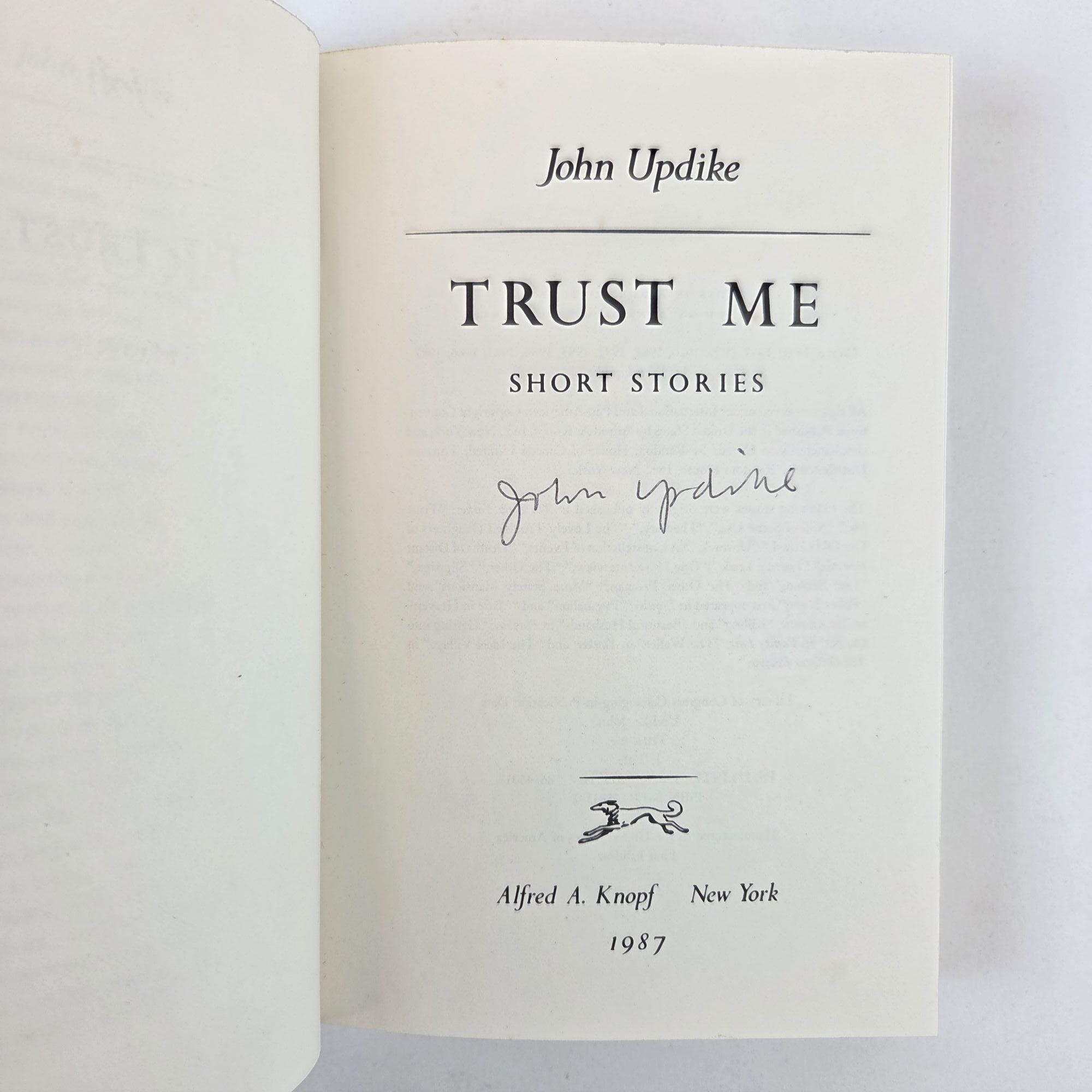 New York: Alfred A. Knopf, 1987. First Edition, First Printing. Hardcover. Octavo, 302 pages. In Very Good minus condition with a Good plus condition dust jacket. Blue spine with white and black text. Dust jacket price uncut "$17.95", has age toning to edges, a stain along the spine tail end, and foxing to edges. Boards have minor bumping to spine tail, and light foxing. Textblock has foxing to edges. Signed flat by John Updike on the title page. Shelved in Room C Overflow. 1404782. Special Collections.