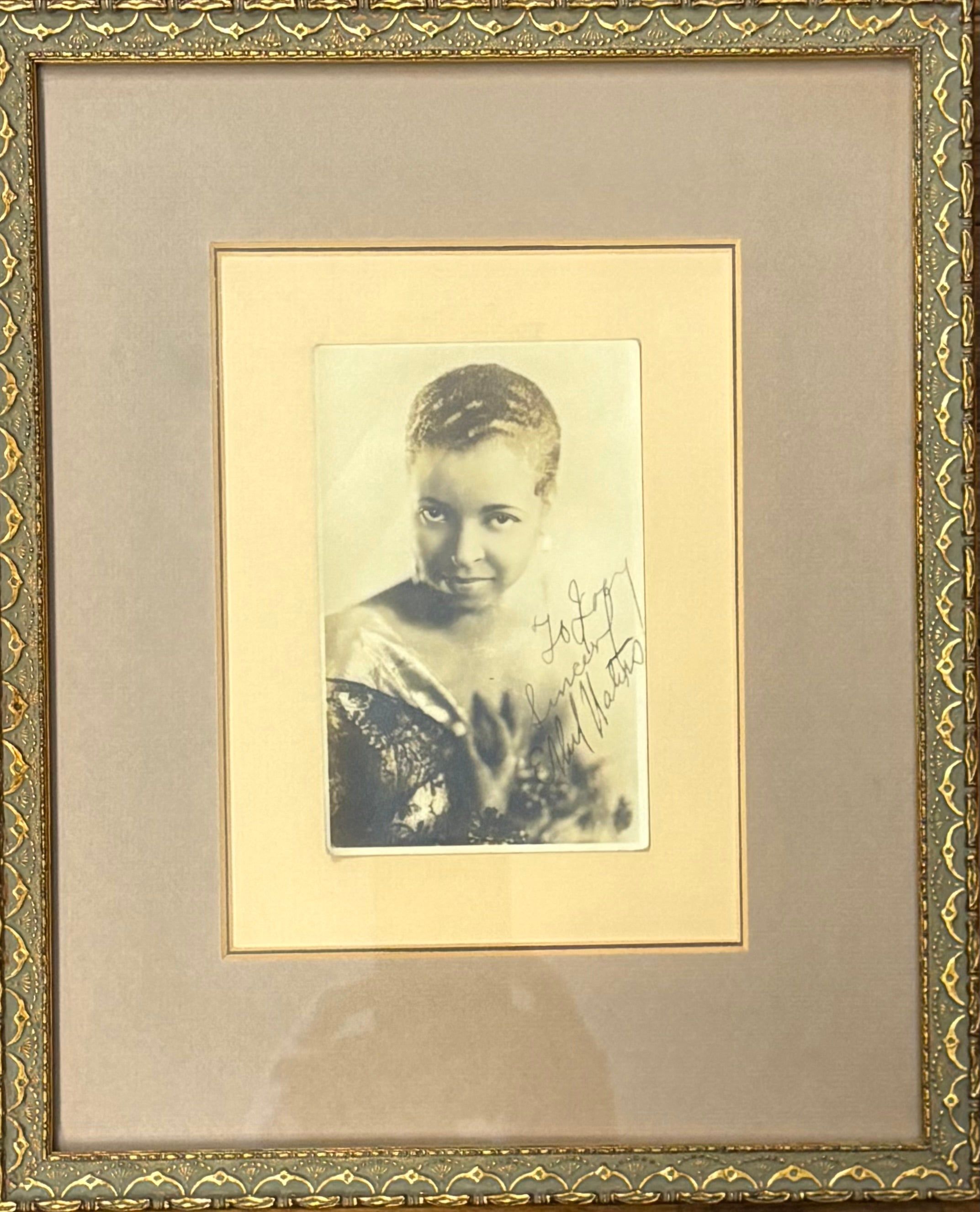framed. very good. Photograph of American signer and actress Ethel Waters. Signed circa 1939. Decorative frame. Please inquire for more information.