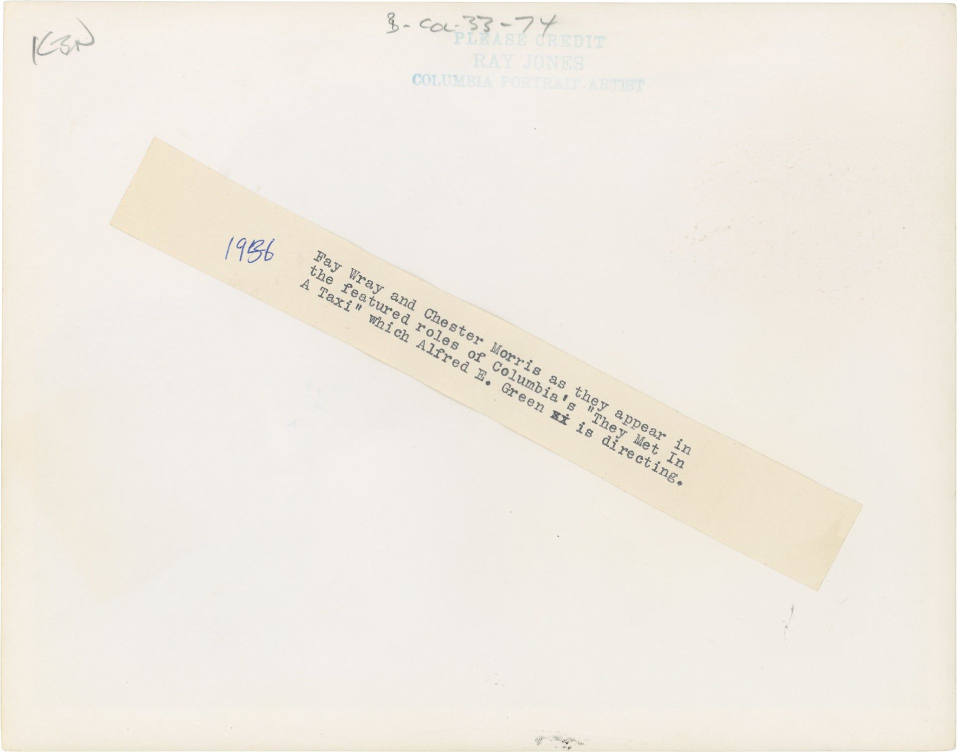 They Met in a Taxi (Original publicity photograph of Fay Wray and Chester Morris from the 1936 film)