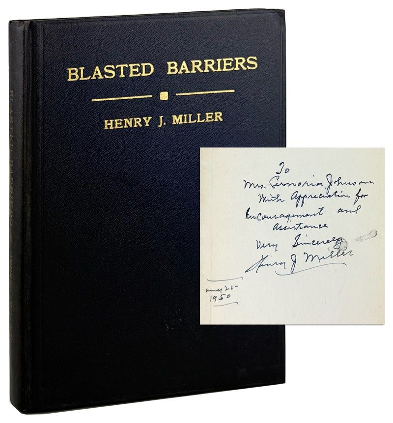 Boston: The Christopher Publishing House, 1950. Very Good/Poor. Boston: The Christopher Publishing House, 1950. First Edition. Signed by Miller at front pastedown with brief inscription to Oklahoma City Urban League Director Cernoria Johnson. Octavo; 140pp. Dust jacket heavily chipped, torn, and in three pieces. Black cloth boards stamped in gilt. Boards show light wear and corners bumped; binding sound; toning to endpapers, else unmarked. Very Good in a poor dust jacket. Uncommon title on racial discrimination presented through the lens of black accomplishment. Miller profiles Iman E. Page, George Washington Carver, and black woman pioneers in the South and West, such as Silva Coffer, "who labored as hard as any White woman and who toiled just as unselfishly for her children and men folks." Each chapter ends with a poem. No copies in retail at time of this writing.
