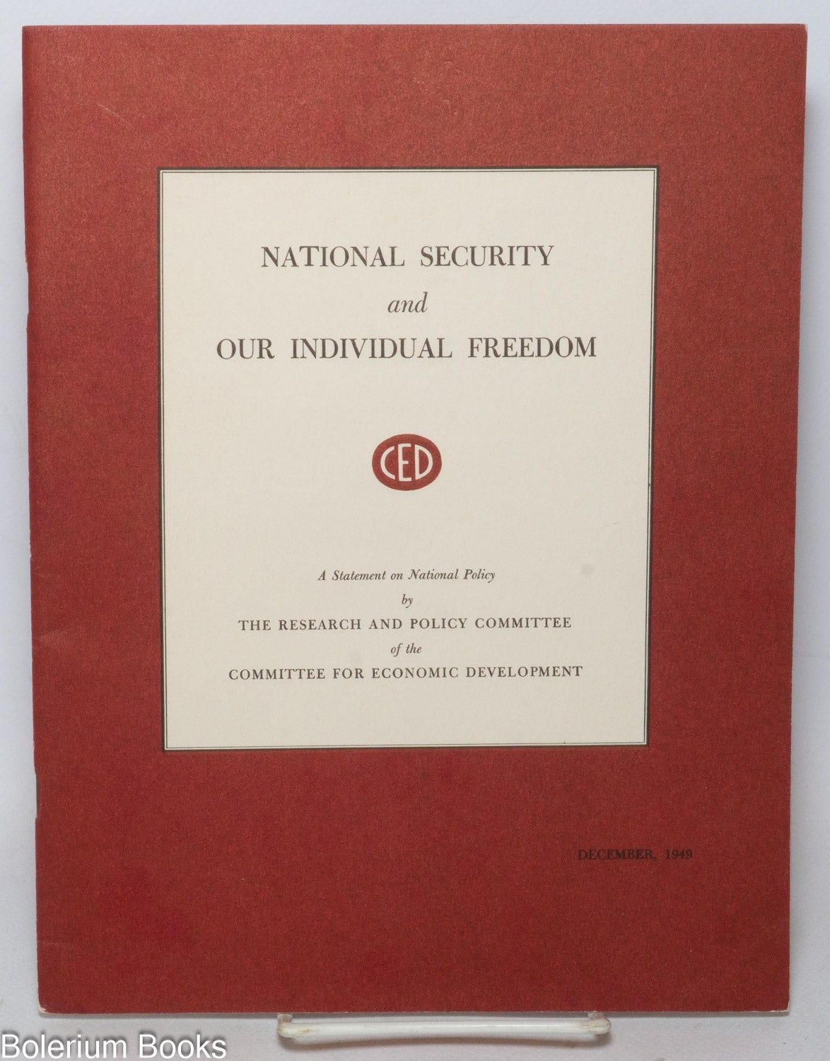 New York: Committee For Economic Development, 1949. Pamphlet. 34, [3]p., stapled wraps, 8.5x11 inches, wraps lightly worn, staples rusted, else very good condition.