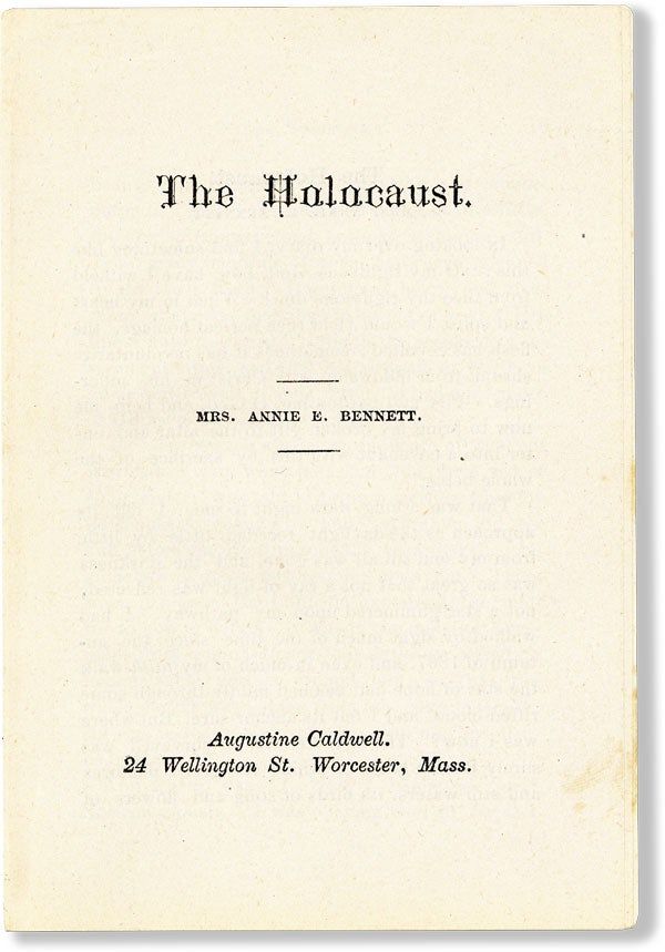 Worcester, MA: Augustine Caldwell, [n.d.; ca 1890]. First Edition. First printing. 16mo (15cm). Cover title; 80pp pamphlet. Fine.