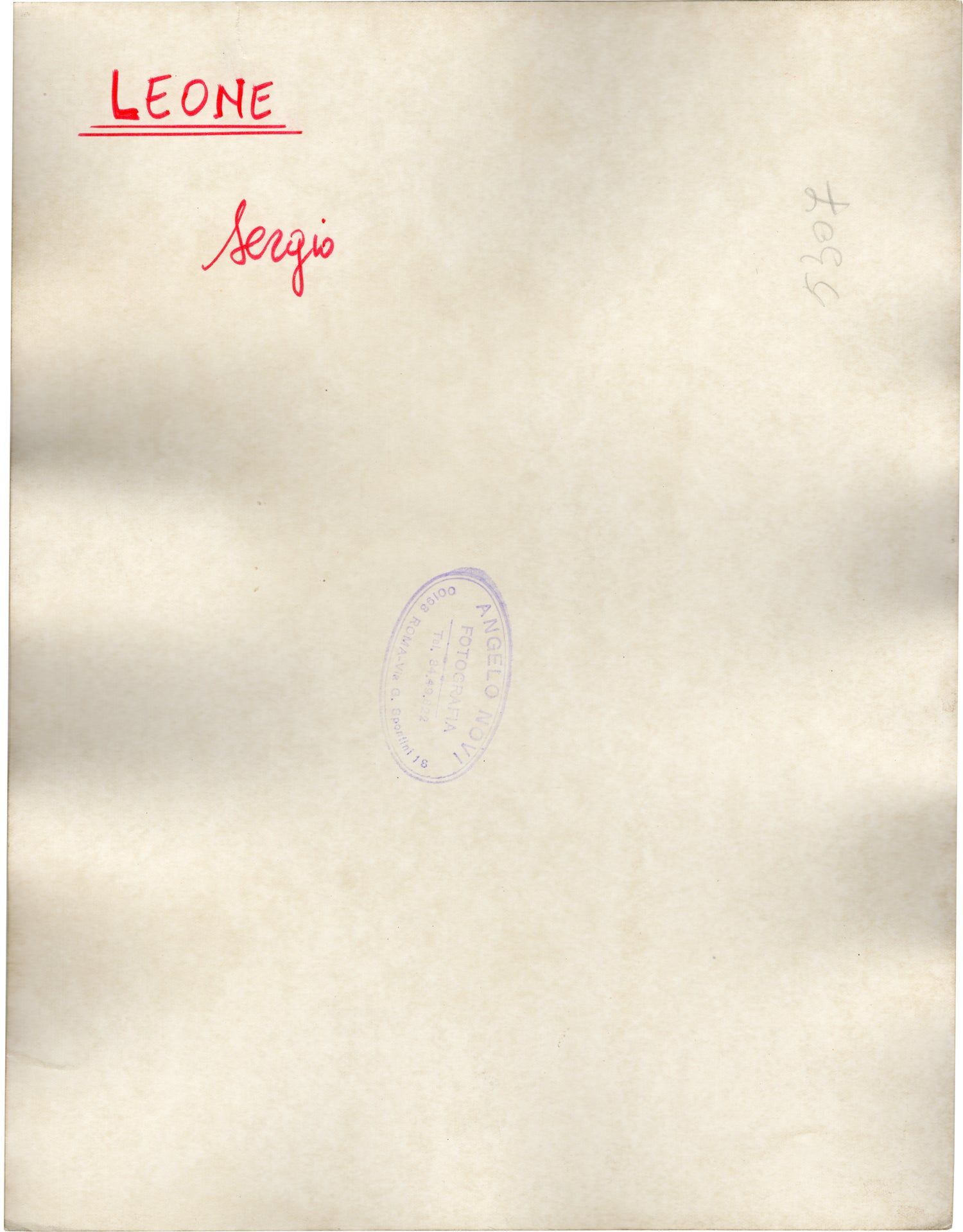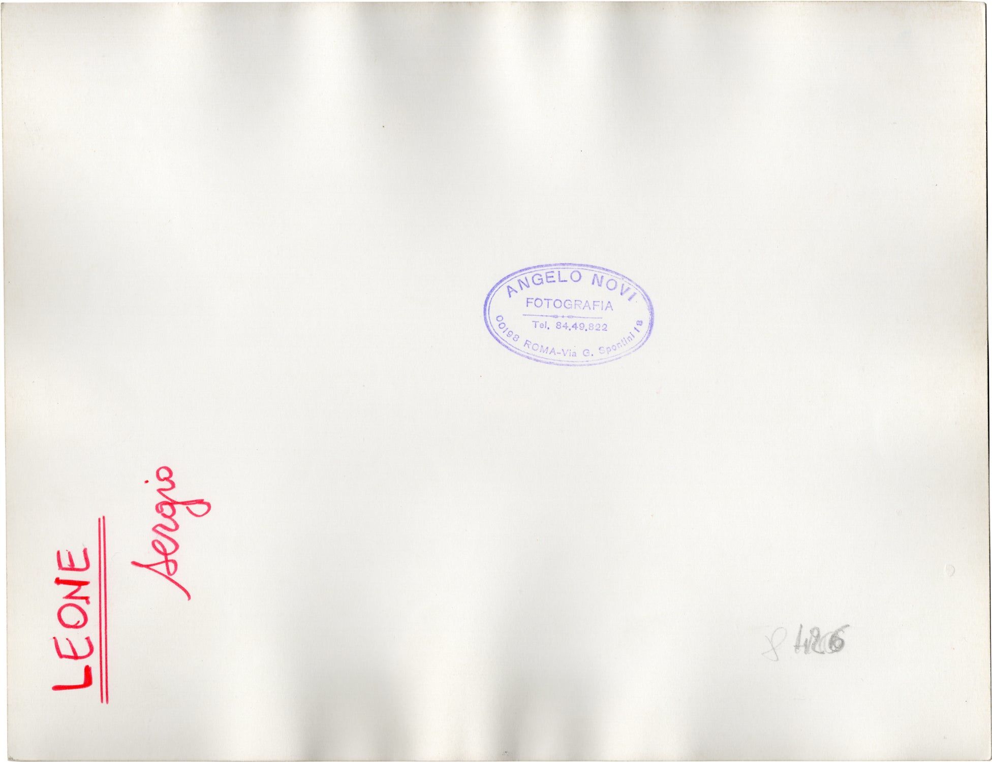 N.p.: N.p., 1968. Two vintage oversize double weight satin-finish photographs of director Sergio Leone on the set of the 1968 Western film. Stamp of photographer Angelo Novi on the versos.