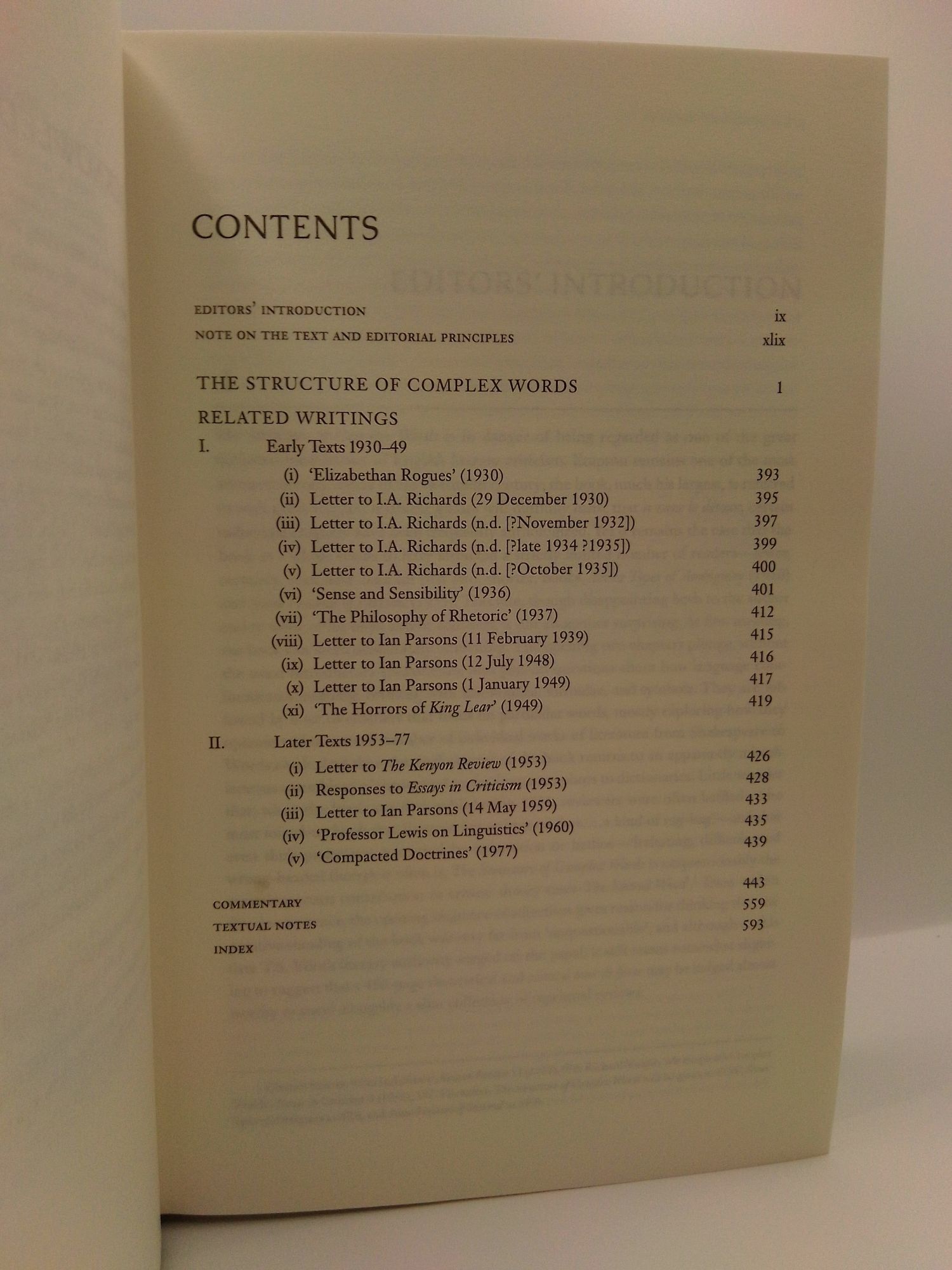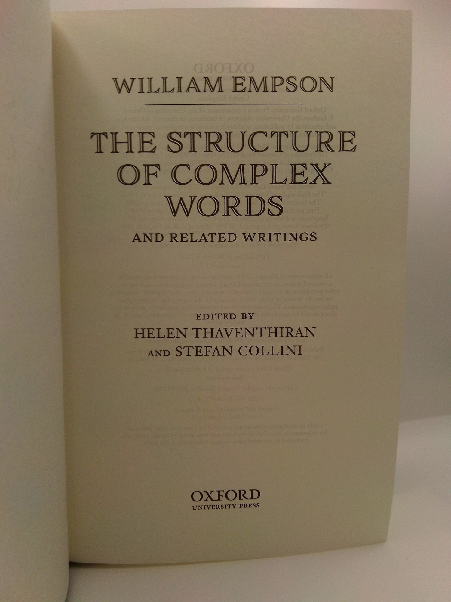 WILLIAM EMPSON: THE STRUCTURE OF COMPLEX WORDS AND RELATED WRITINGS