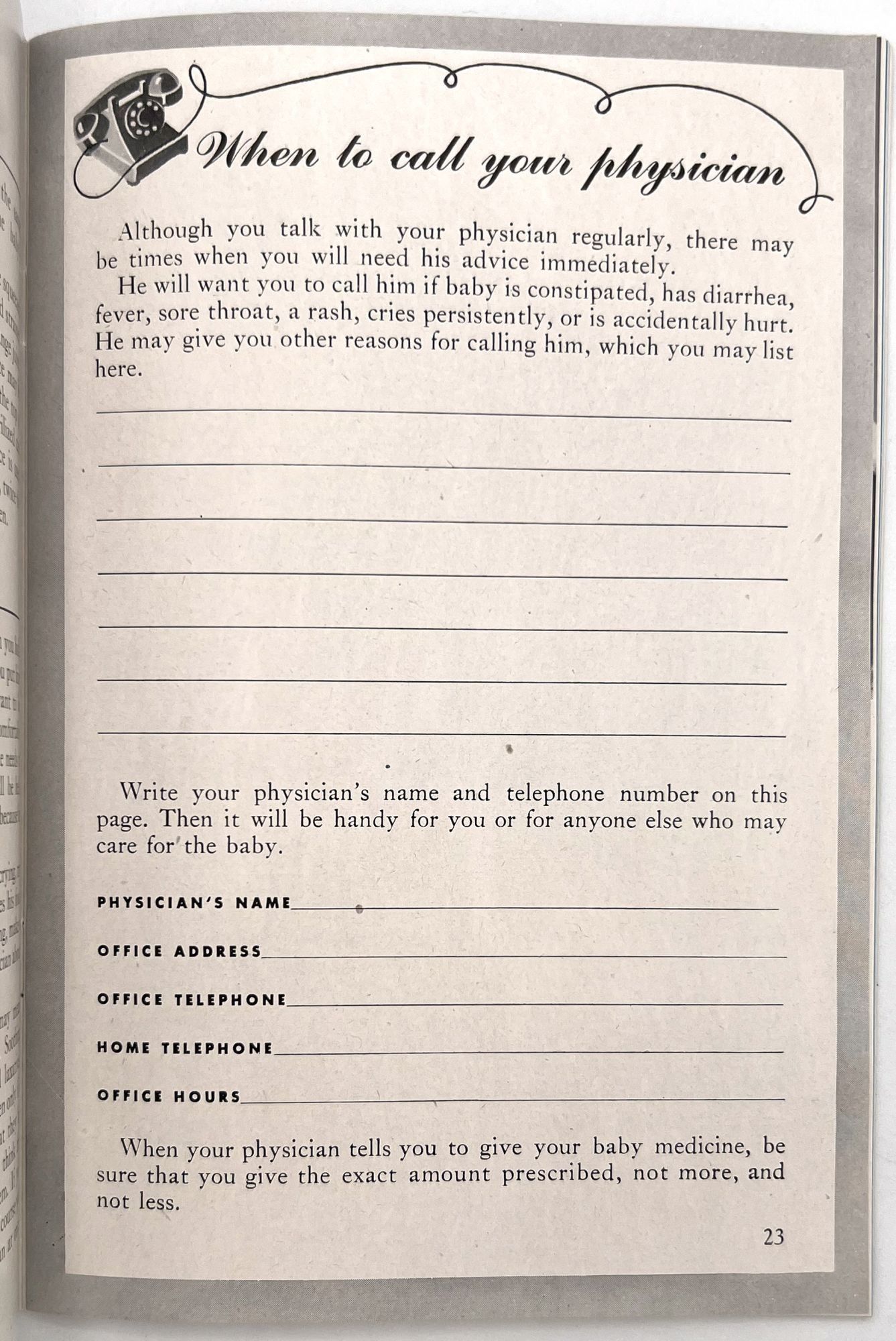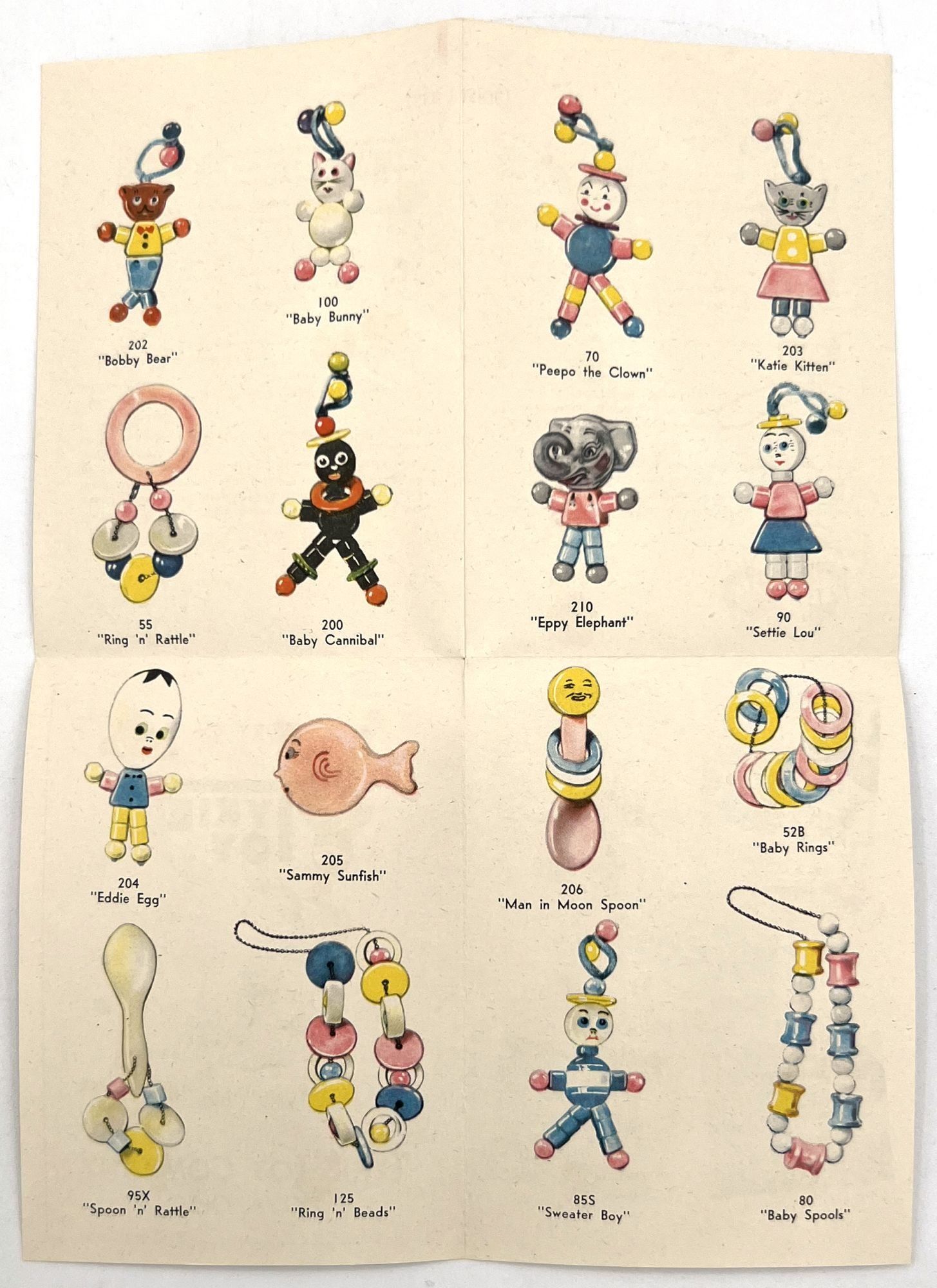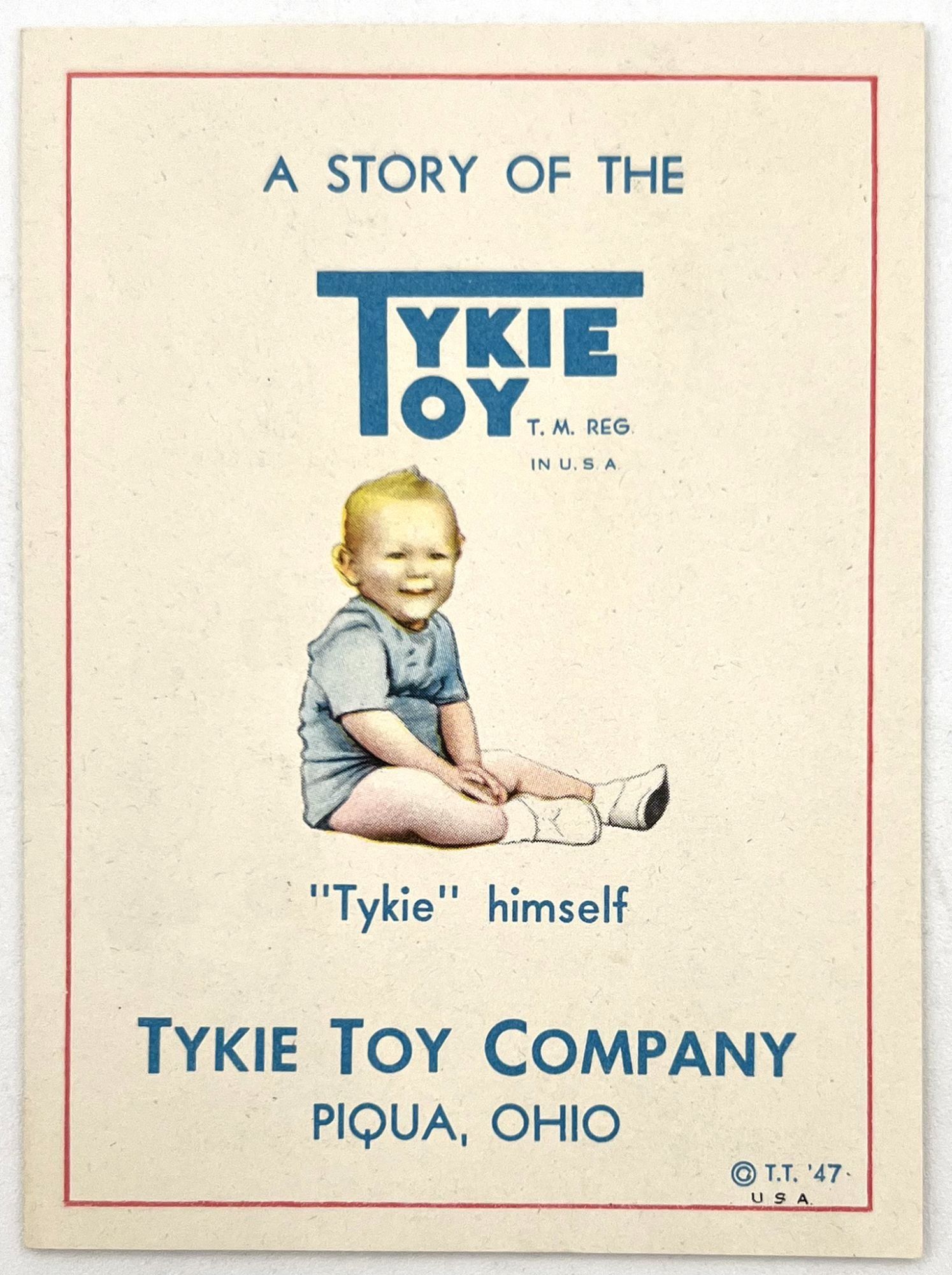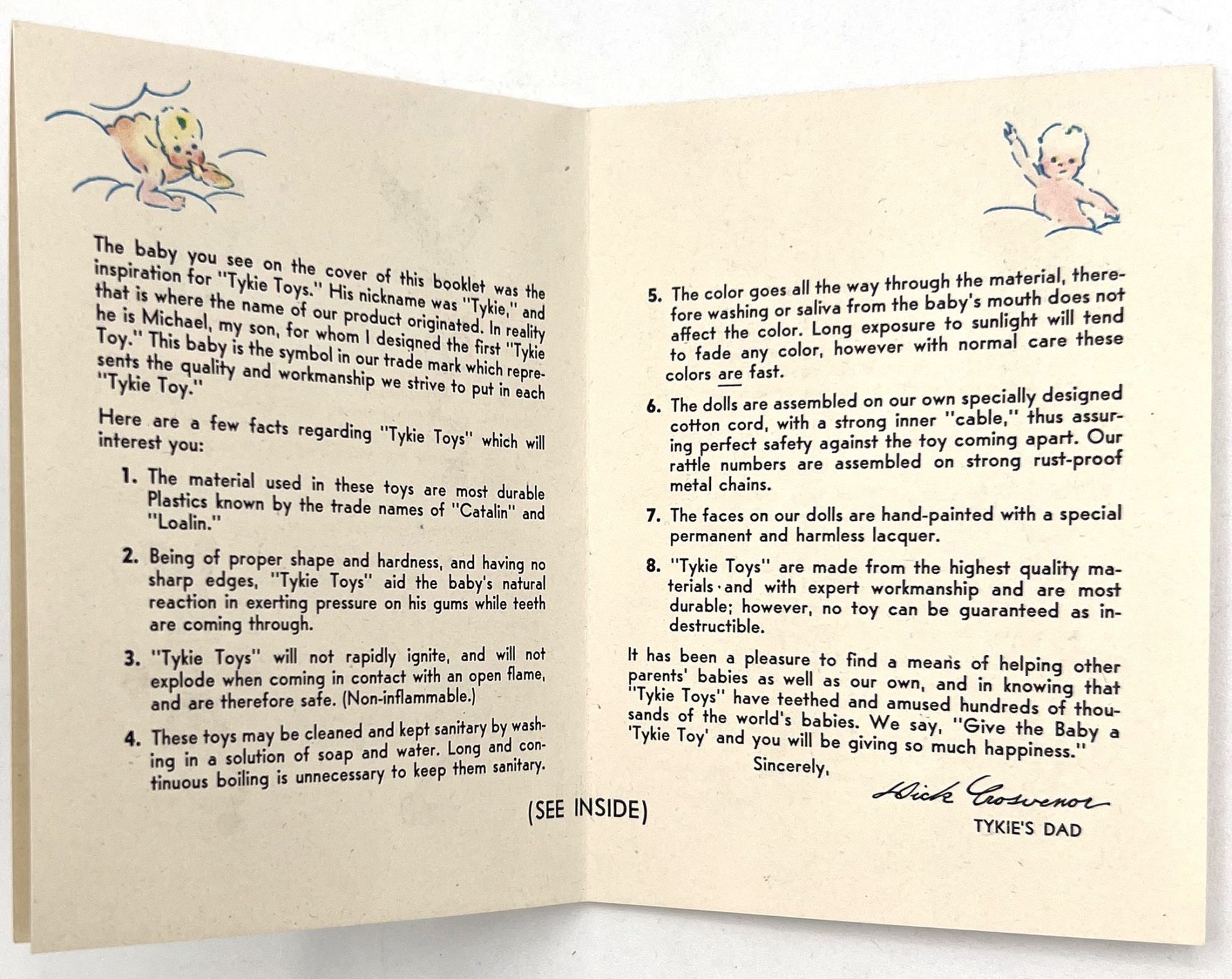 United States, 1947. Very good. Light toning.. A set of five (5) items advertising products to new parents between 1946 and 1947, at the beginning of the postwar "Baby Boom" in the United States. Provides excellent insight into parenting advice at the time, and how companies advertised their products to new parents (i.e. new mothers). Companies represented include: Pet Milk; Tykie Toys; Johnson & Johnson; Mennen Baby Oil; and Kendal Mills, makers of Curity brand masks, bibs, diapers, and cotton. Interesting to see the inclusion of face masks in recommended infant care supplies: "Masks are recommended by authorities in books on baby care and magazine articles. They reduce the dangers of breathborne bacteria. Should be worn while bathing and feeding baby whenever colds are present." Also interesting is the emphasis of learning through play (Tykie Toy advert), and the subjects covered in the Pet Milk booklet (8" by 5.5", pp. 62): nutrition and preparing formula, bathing and hygiene, weighing, sleeping, illness, teething, growth and psychology, and behavior management. Includes blank charts for baby's "firsts", "gifts", "birth record", and "immunizations". Interesting to see how parenting advice has or has note changed over the years, and how companies (still) market their products to new mothers.