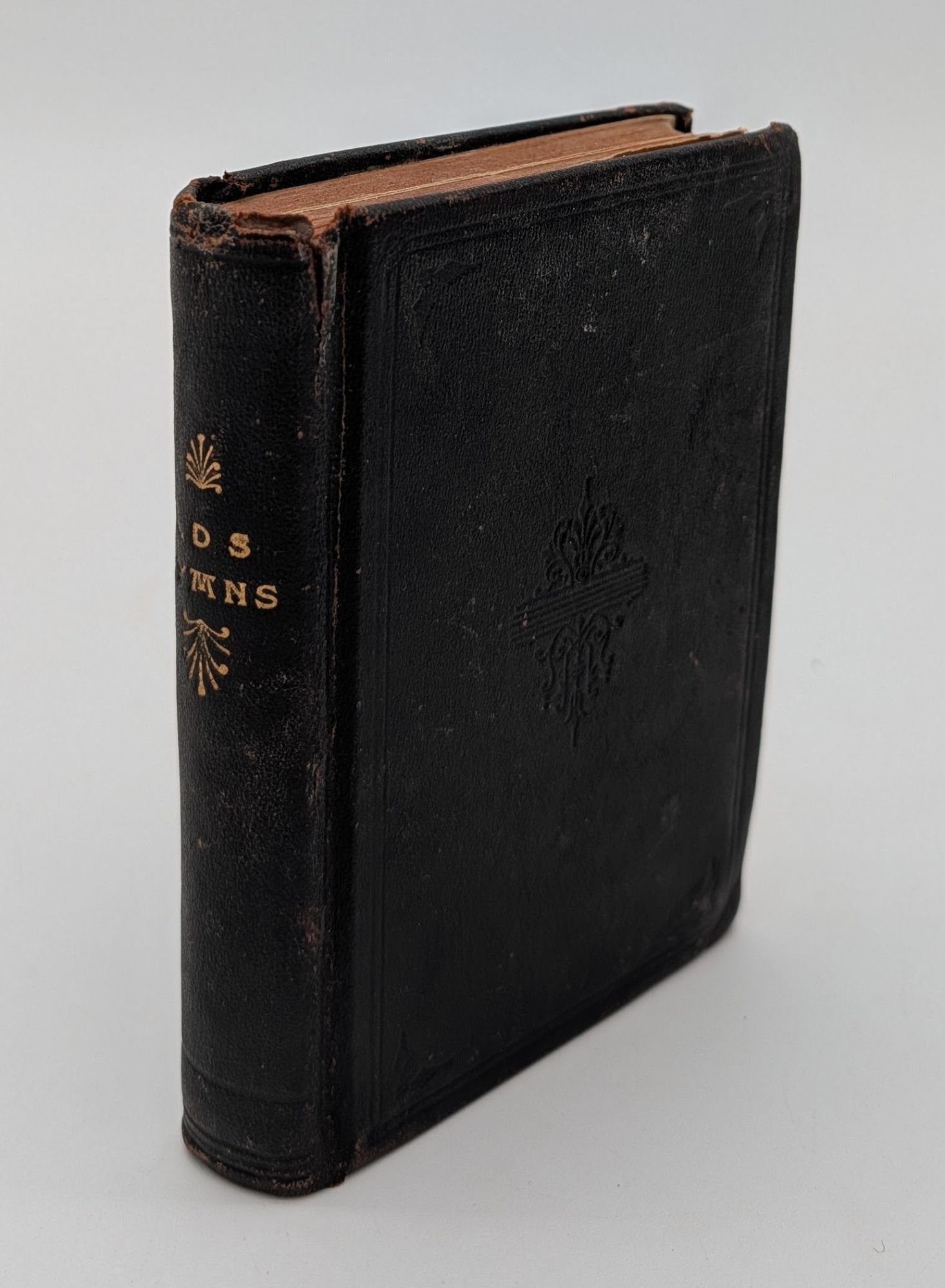 Salt Lake City: Deseret News, 1912. Twenty-fifth Edition. Leather bound. Fair. 486pp. Twenty-fourmo [12.5 cm] Black leather with embossed ornamental designs and double blind ruled borders on the boards. "L.D.S. Hymns" stamped in gilt with decorative flourishes on the spine. Green and white endpapers. *** Missing page 17/18. 1/2" split at head of spine, near front joint. Front endpaper cosmetically cracked along the hinge. Previous owner's name in pen on front free endpaper. Notations and markings in pen and pencil very occasionally in the text, however the preliminary and terminal leaves are more heavily marked. Fore-edge of title page chipped. Tape repairs to a couple of the pages. Pp. 71-74 nearly detached. Page numbers periodically contain numerals which are not printed in full. Flake #1786. The 25th edition of the LDS hymnal, first published in 1835 by Emma Smith, wife of LDS Church founder, Joseph Smith. 385 hymns contained in this edition.