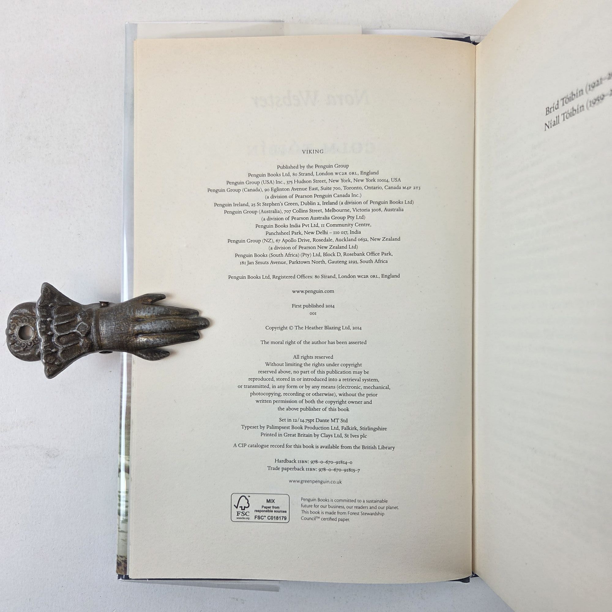 London, UK: Viking, 2014. Exclusive Signed Edition, First Printing. Hardcover. Octavo, 310 pages. In Very Good condition with Very Good condition dust jacket. Spine is white with metallic bronze and red lettering. Dust jacket protected by mylar covering, price uncut: "£18.99" on front flap, has mild shelving wear along spine head and tail. Boards have mild shelving wear along spine head and tail, a small dent along front fore edge, and mild creasing to joints. Textblock head edge has mild age-toning. Signed flat by Colm Tóibín on publisher's limitation page. Shelved in Room C overflow. 1405041. Special Collections.