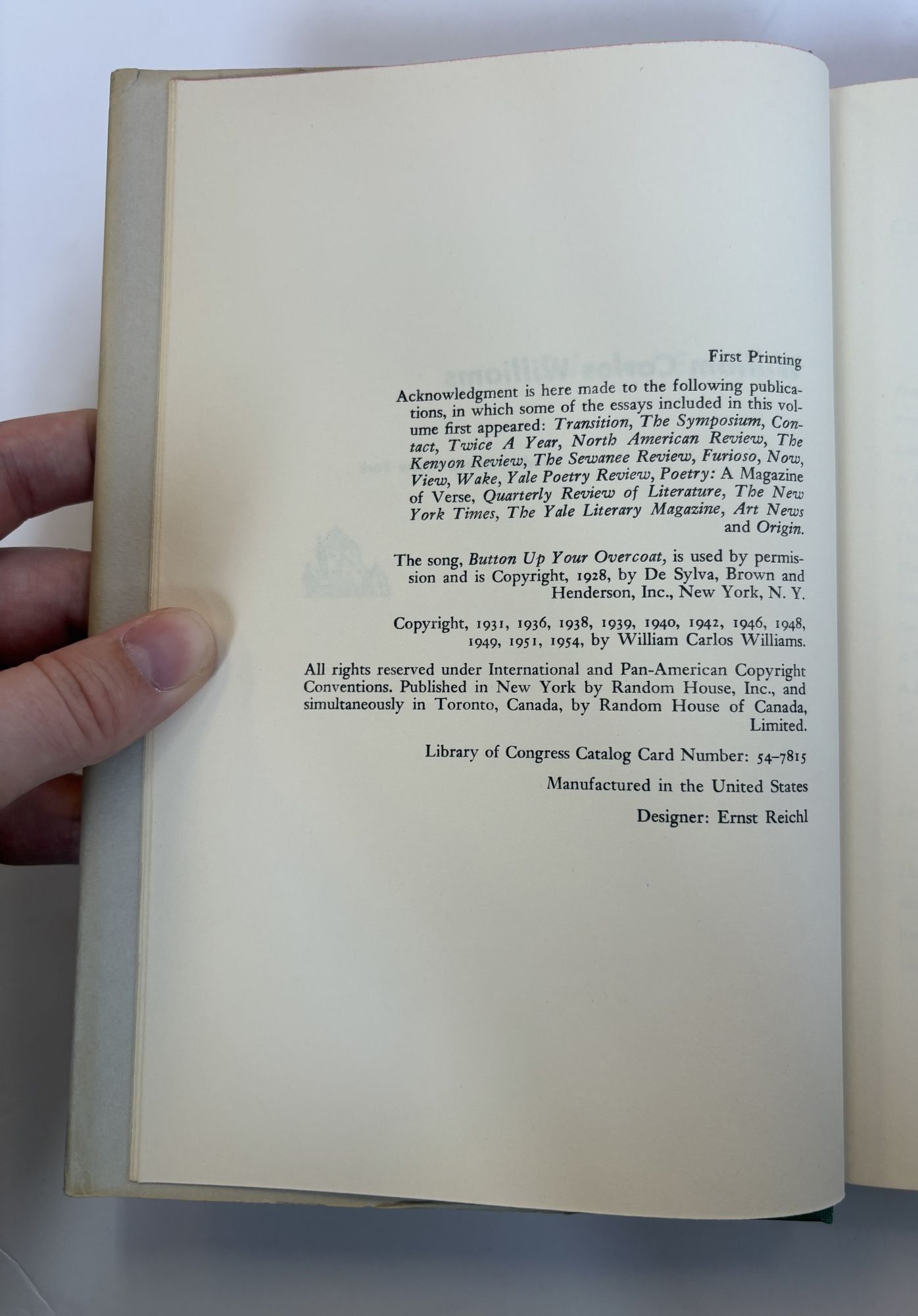 SELECTED ESSAYS OF WILLIAM CARLOS WILLIAMS