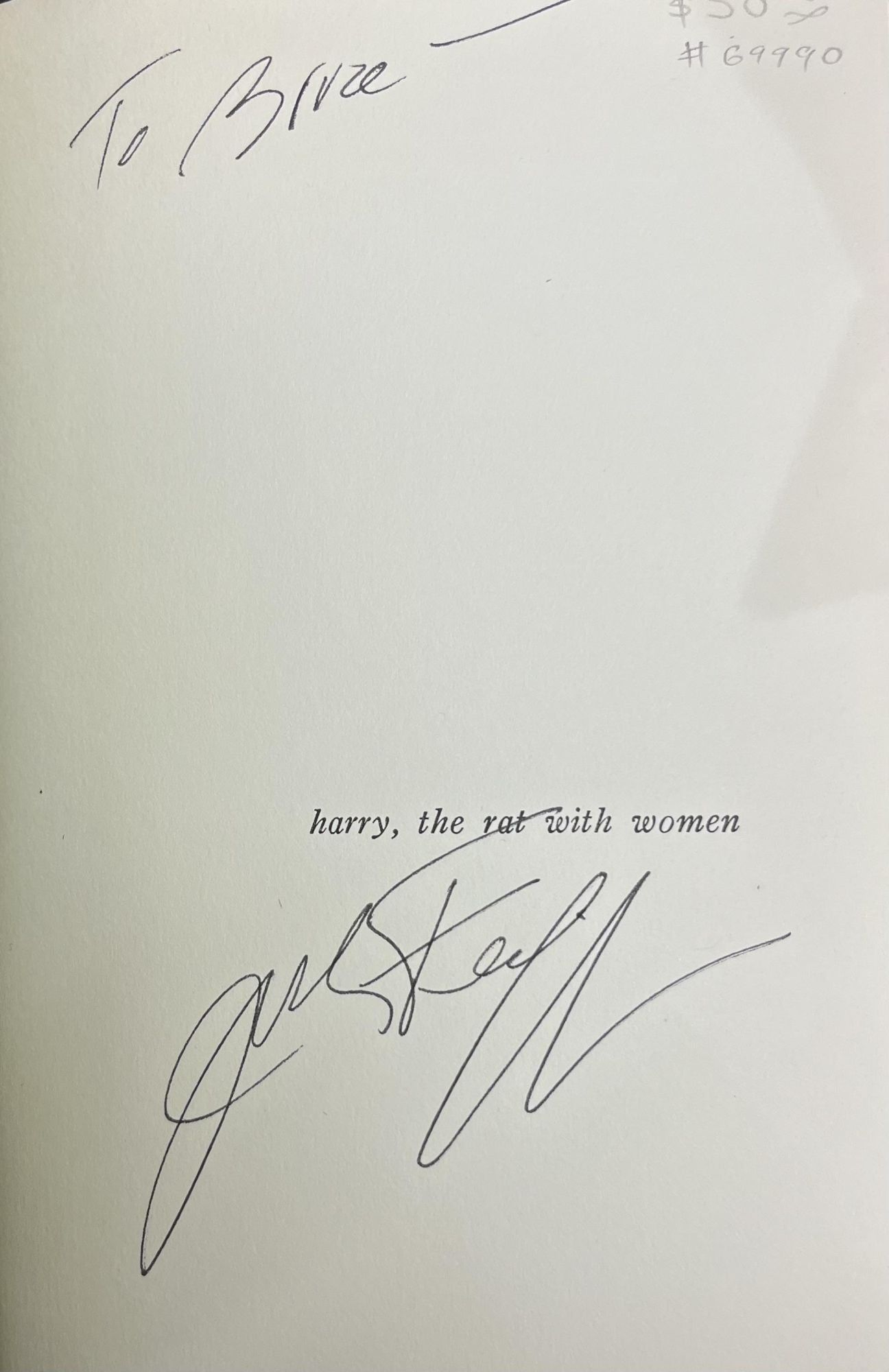New York: Mcgraw-Hill Book Company, Inc, 1963. First edition. Hardcover. Near Fine/Very Good. SIGNED. 181 pp. Octavo [20.8 cm]. Quarter-bound in bright maroon paper over board with green paper spine. Gilt title on spine. Inscribed to previous owner and signed by author on half-title page. Minor bumping to the foot of the spine. DJ is slightly worn and the top corner of the inner flap is mitered. Presumed first edition with no indication to the contrary on the copyright page. "In his first novel Jules Feiffer tells us the extraordinary odyssey of Harry who moved through the female population of New York and whose love left no aftertaste ('He was like summer thirst. He was like Chinese food'), and of the women who murmured after him: 'Harry's a rat. Harry's a rat.'...Harry's furious attempts to learn how to 'make contact,' his sudden marriage to Eugene Vasch, a woman every inch his equal beauty 'except for some hard lines around the jaw,' and his tragic decline make one of the most wholly original—as well as amusing and moving—novels of our time." -from the DJ flaps.