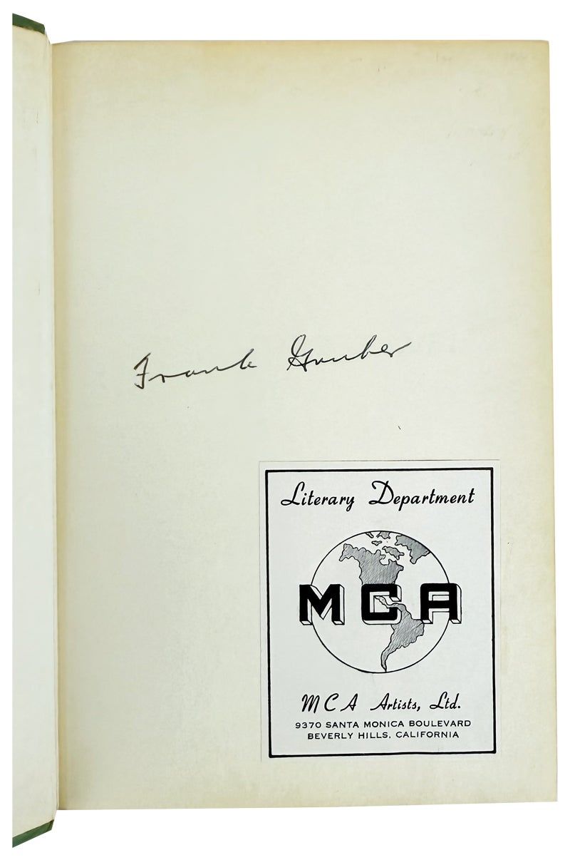Signed by the author on title page accompanied by the ownership ex libris of the Literary Department of the MCA Artists agency. "Town Tamer" was indeed adapted into the 1961 film of the same title, starring Dana Andrews and Lon Chaney Jr. and directed by Lesley Selander.