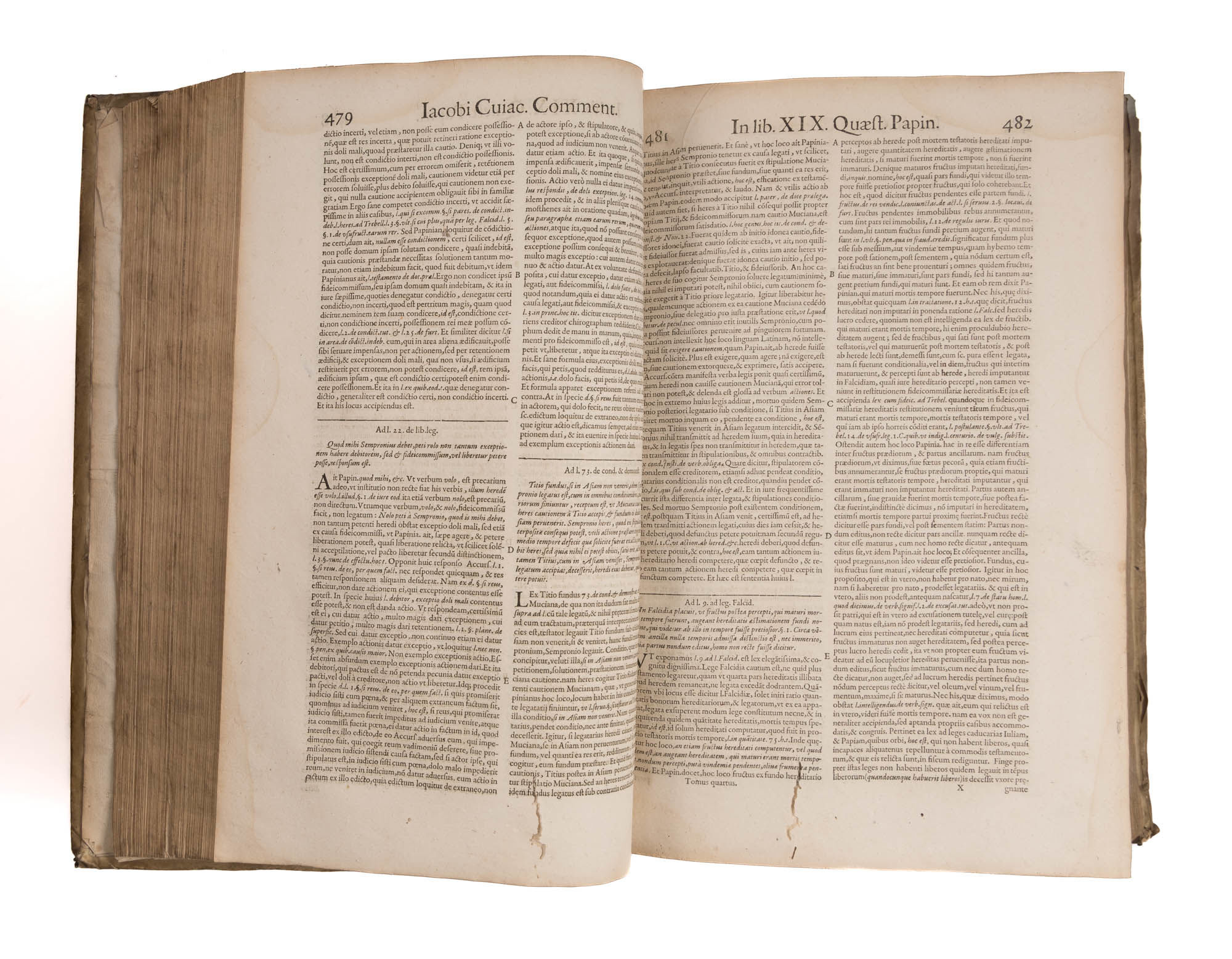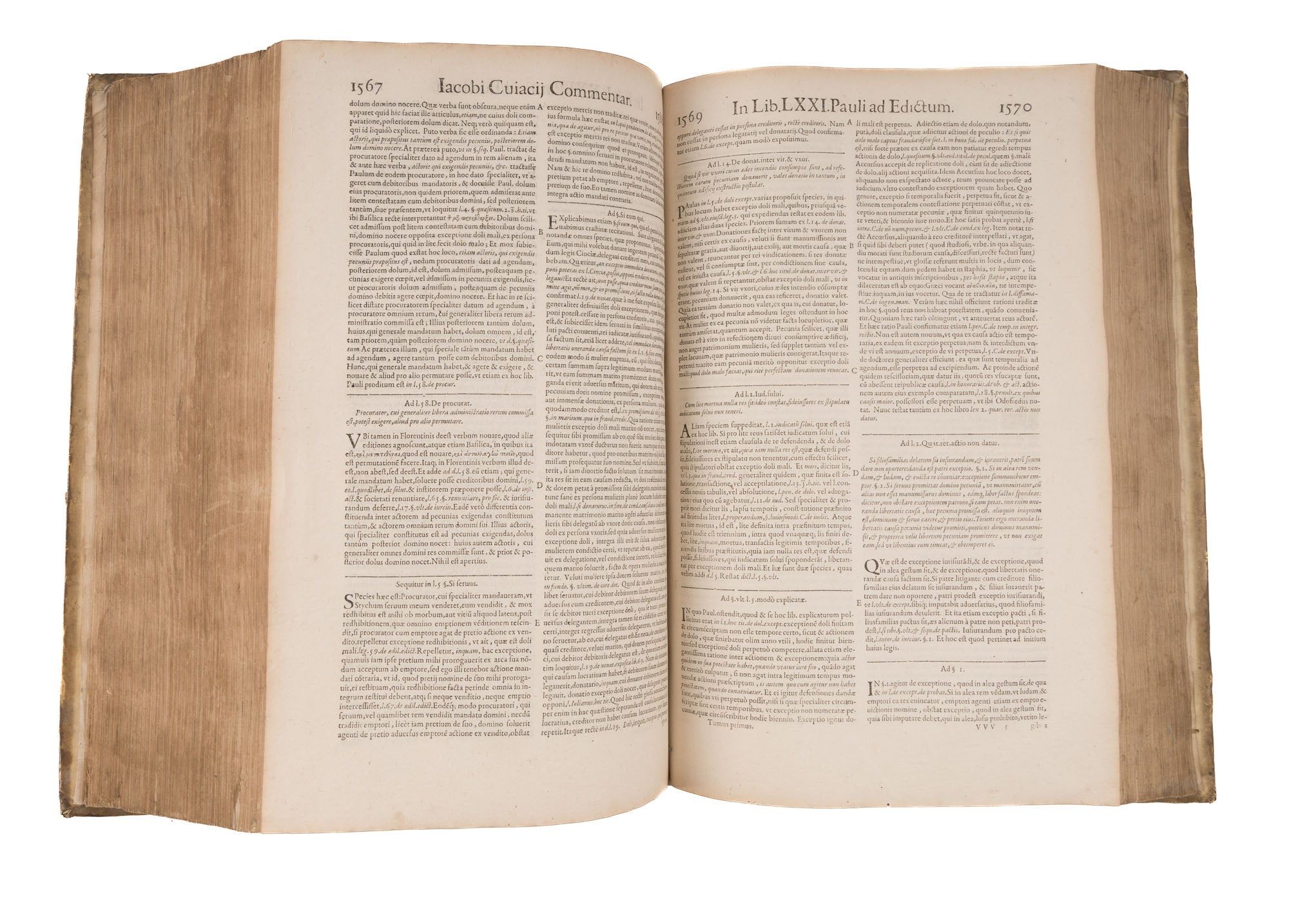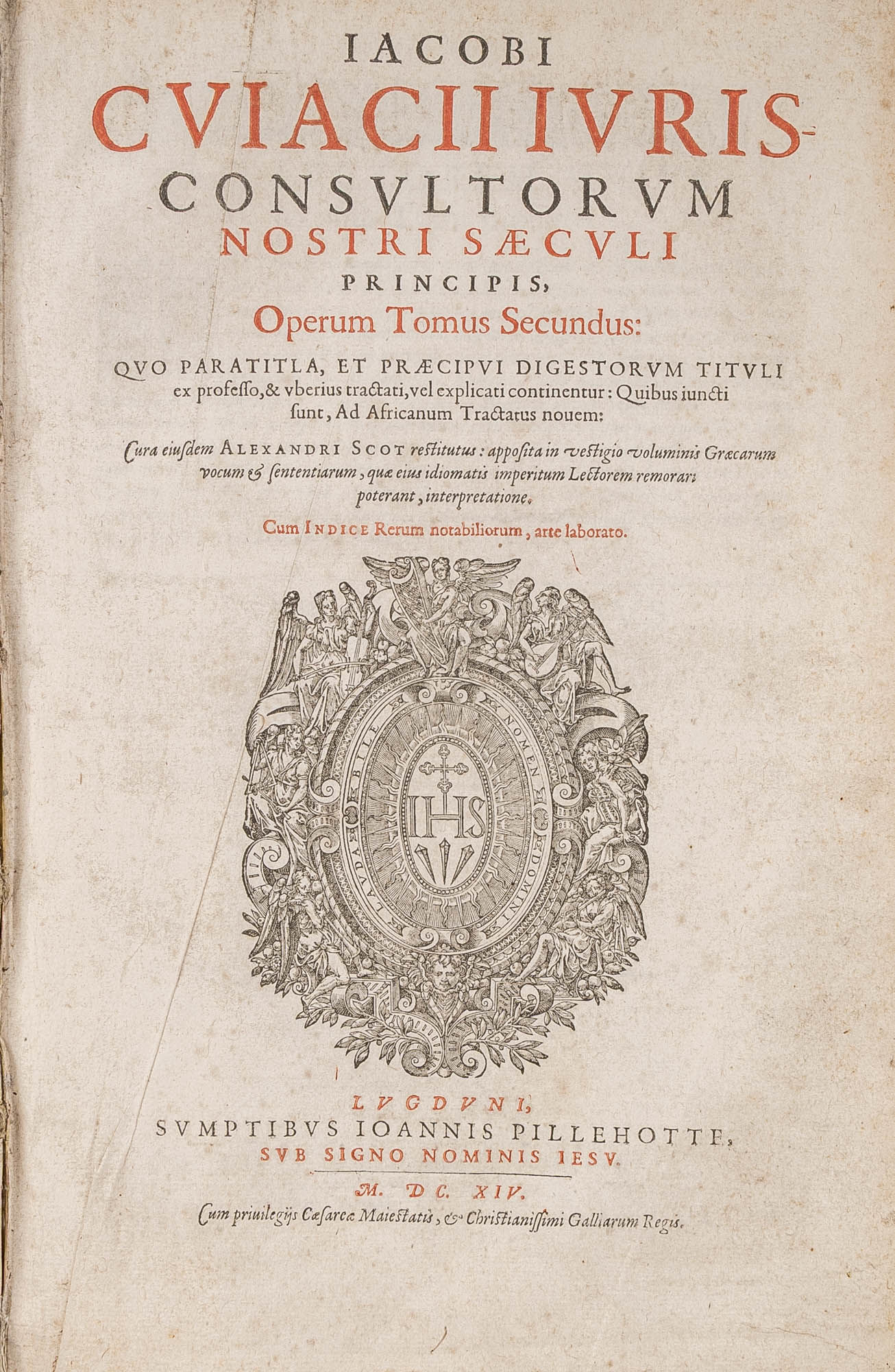 1882. Bracton, Henry de, [1210-1268]. Twiss, Sir Travers, [1809-1897], Editor. Henrici de Bracton De Legibus et Consuetudinibus Angliae. Libri Quinque in Varios Tractatus Distincti. Ad Diversorum et Vetustissimorum Codicum Collationem Typis Vulgati. London: Longman & Co., 1878-1882. Volumes 1 to 5 of 6 Volumes. Burgundy library cloth with gilt stamped spines and front covers. Moderate shelfwear with some rubbing and fading to spines and boards. Red and black ink title pages. Bookplates to front pastedowns. Property stamps to half-titles, title pages, and contents pages, otherwise internally clean. A very good set. $150. * Volumes One to Five of six volumes. Latin text on verso, English translation on recto. Contents: Vol. 1. On the Division of Things, Book I; On Acquiring the Dominion of Things, Book II, As Far as Chapter xxxvi; Vol. 2. Of Acquiring the Dominion of Things, Book II, Chapter xxxvii; Of Actions, Book III, Treatise I; Of the Crown, Book III, Treatise II; Articles of the Eyre, 2 Edward I, Appendix I; Articles of the Eyre, 3 Edward I, Appendix II; Plea-roll, 18 Henry III, Appendix III; Vol. 3. Of Assises of Novel Disseysine, Book IV, Treatise I; Vol. 4. Of an Assise of Last Presentation, Book IV, Treatise II; Of an Assise of Mortdancester, Book IV, Treatise III; Of a Writ of Cosinage, Book IV, Treatise IV; Of an Assise of Utrum, Book IV, Treatise V; Of an Action for Dower, Book IV, Treatise VI; Vol. 5. Of an Action of Entry, Book IV, Treatise VII; Of a Writ of Right, Book V, Treatise I; Of Essoins, Book V, Treatise II; Of Defaults, Book V, Treatise III.