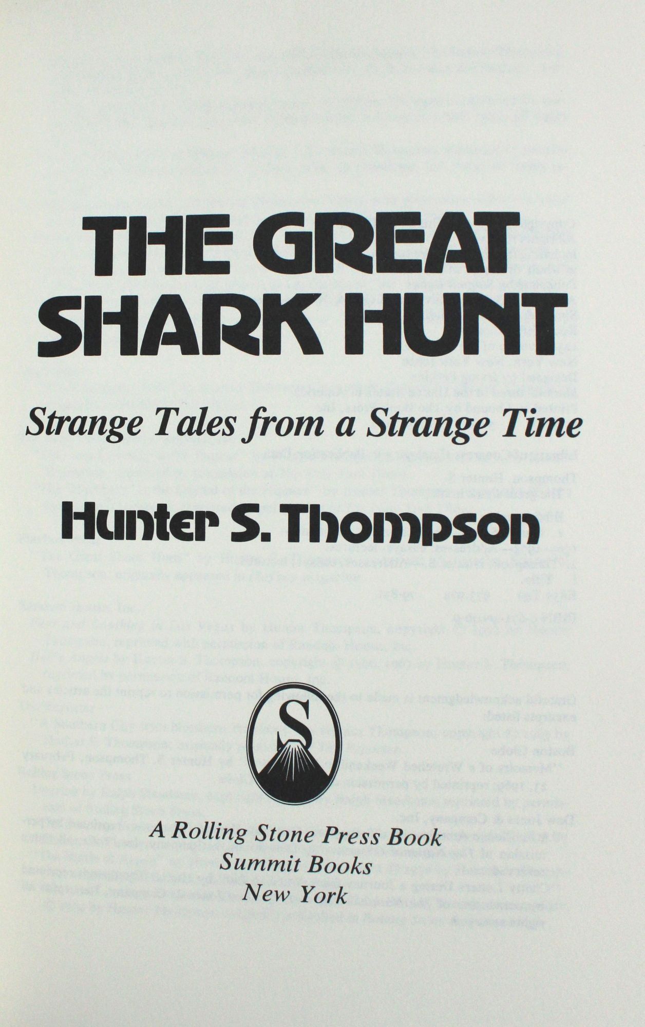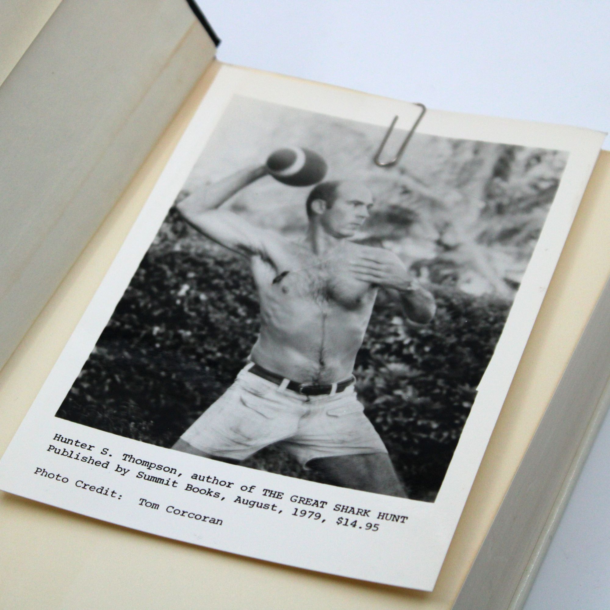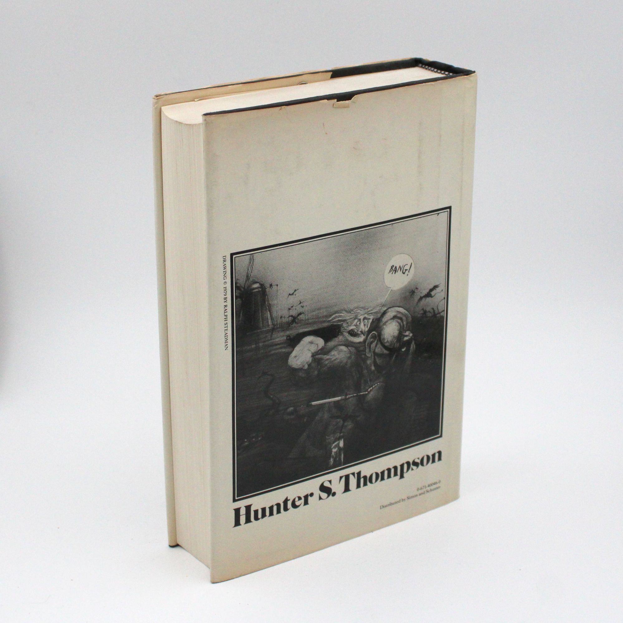 New York: Summit Books. First edition, first printing, advance copy, with promotional photograph of HST throwing a football. 602 pp. 4to. Quarter bound black cloth and paper, printed in white on cover and spine; photographic dust jacket; edge wear with some chipping at top edge and head of spine; lightly tanned at top edge; black-and-white Ralph Steadman illustration on rear. First edition, first printing, advance copy, with promotional photograph of HST throwing a football. 602 pp. 4to. An advance copy — complete with a promotional photograph of Thompson throwing a football — of this expansive collection of Thompson's essays and articles from 1959 to the late 1970s which brilliantly document the evolution of his unique writing style, in particular the development of his Gonzo brand of journalism. Divided into four sections, it includes excerpts from both of his Fear and Loathing books (Las Vegas and Campaign Trail '72), as well as pieces created for Rolling Stone, the New York Times, and the National Observer, among many others. From the personal collection of James Silberman, who first edited Thompson at Random House, and then later published him at Summit Books, his own imprint at Simon & Schuster.