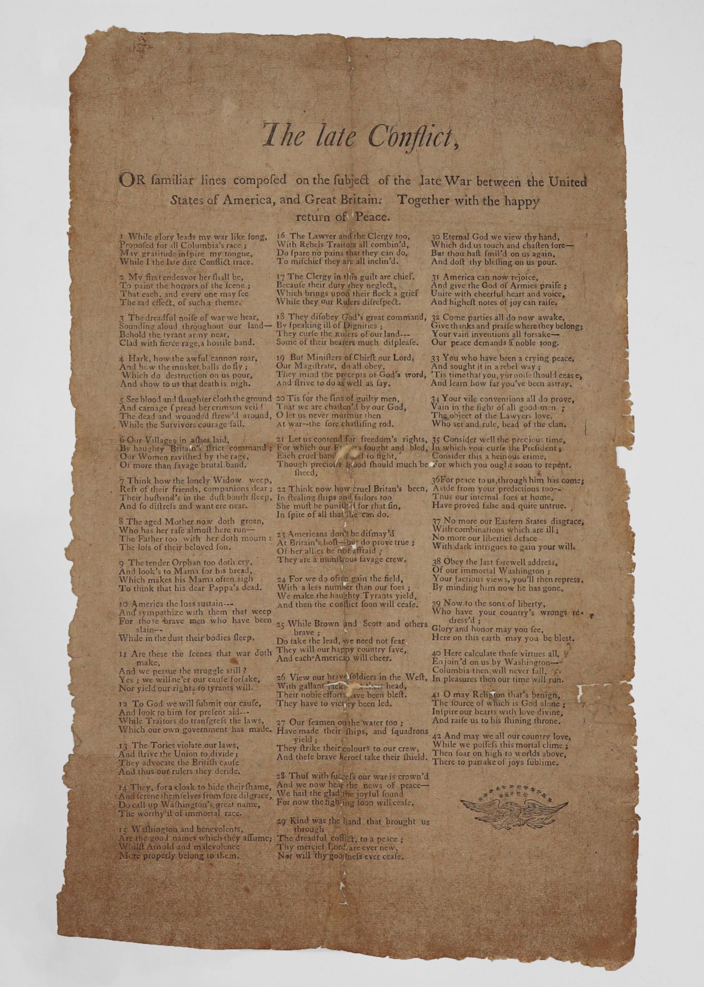 The late Conflict, Or familiar lines composed on the subject of the late War between the United States of America, and Great Britain. Together with the happy return of Peace
