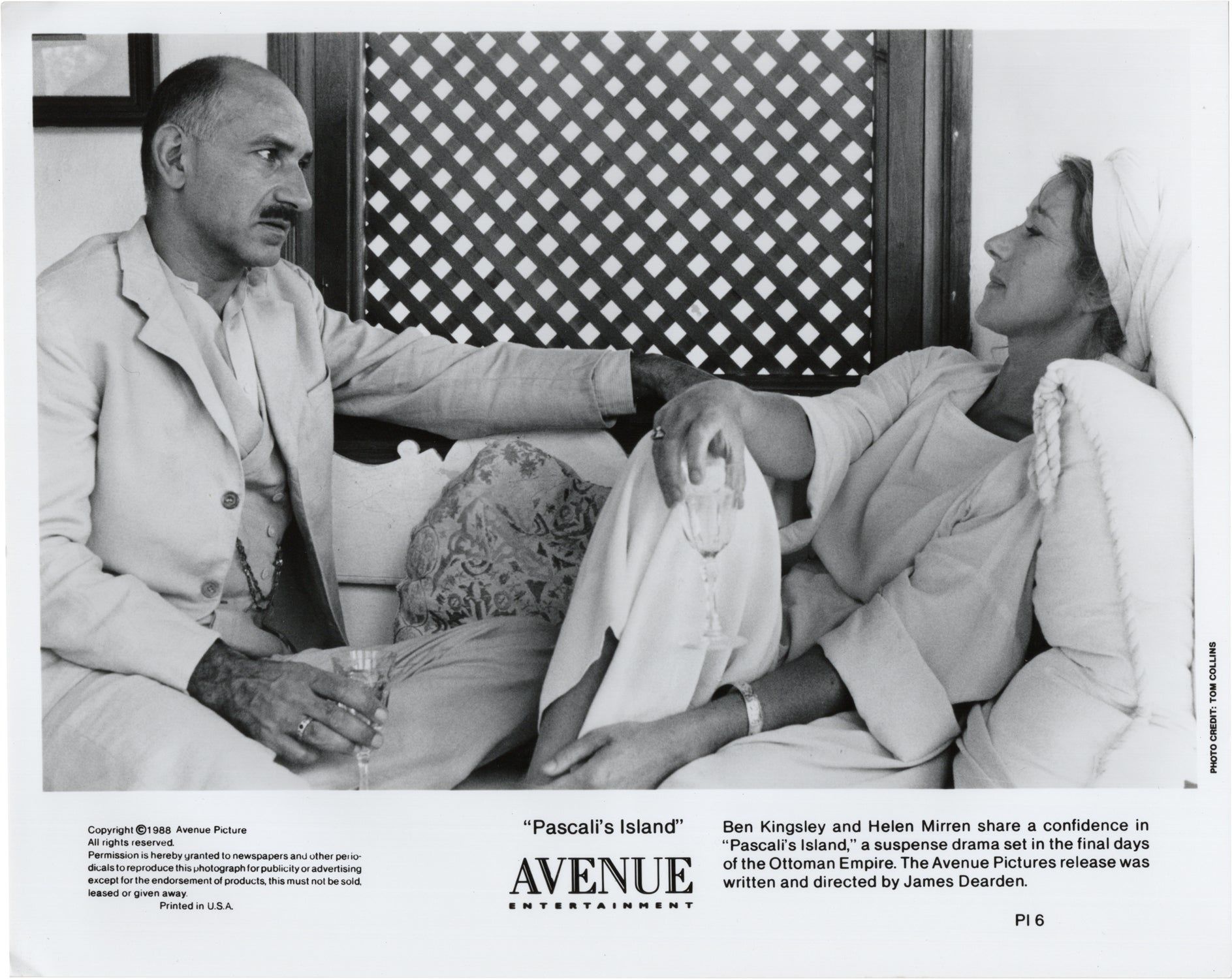 Santa Monica: Avenue Pictures, 1988. Vintage studio still photograph from the 1988 film, showing Ben Kingsley and Helen Mirren.