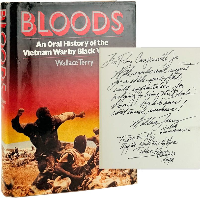 Warmly inscribed and signed on front free endpaper to television director and producer Roy Campanella Jr., son of the professional baseball player: "For Roy Campanella Jr. With regards and respect for a colleague. And with appreciation for helping to bring the Bloods home! Here's to your continued success! Wallace Terry / 12/12/84 / Washington, D.C." Additional gift inscription to Roy from Malik Edwards below the author's inscription.