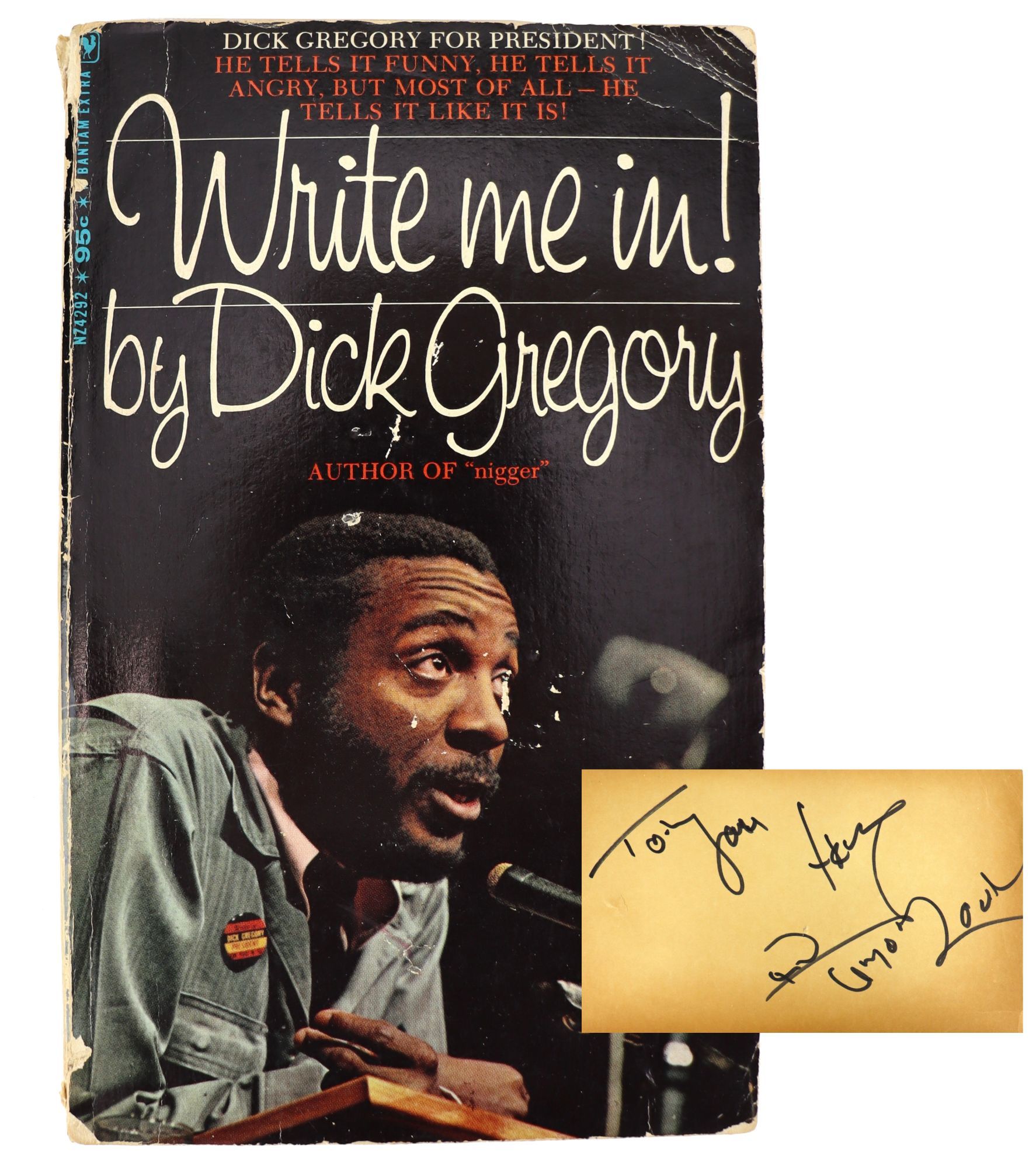 New York: Bantam Books, 1968. Good. New York: Bantam Books, [1968]. Third Printing. 12mo (17.5cm); publisher's black photo-illustrated card wrappers; 158pp.; sixteen leaves of halftone illus. Wrapper margins rather rubbed and worn, small chip at spine crown, textblock uniformly toned; a Good copy only. Inscribed and signed by Gregory inside upper cover.