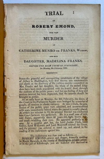 Trial of Robert Emond for the Murder of Catherine Munro or Franks, Widow, and Her Daughter, Madelina Franks, Before the High Court of Justiciary, on Monday, 8th February, 1830