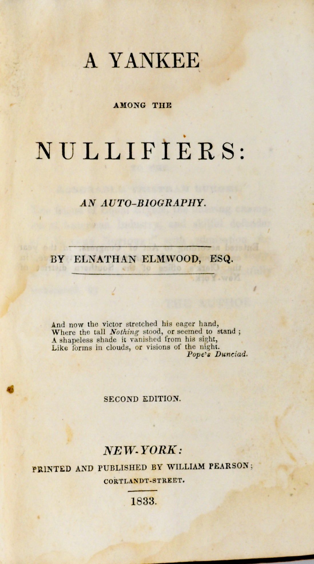[SOUTHERN AMERICANA] A YANKEE AMONG THE NULLIFIERS, AN AUTO-BIOGRAPHY
