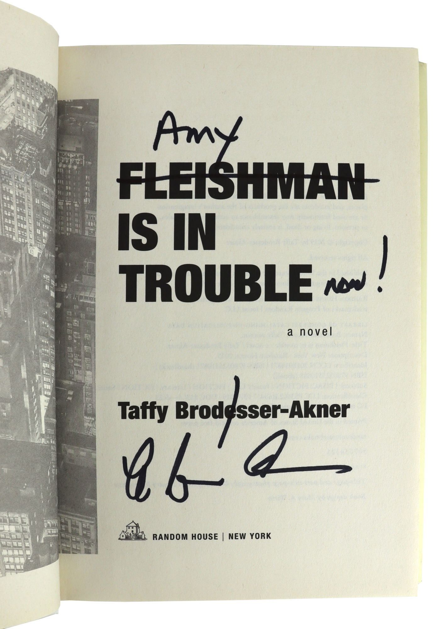 New York: Random House, 2019. Near Fine/Very Good +. New York: Random House, 2019. Stated First Edition. Octavo (24cm); 373pp. Publisher’s photographic dust jacket with $27.00 price intact; boards quarter-bound in beige and white cloth with gilt stamping to spine. Dust bumped at spine ends and corners but otherwise clean. Boards bumped at spine ends; otherwise clean with sharp corners. Binding sound. Textblock, endsheets, and interior pages clean. Signed by the author on the full title page, where she has cheekily crossed out “Fleishman” and inscribed the name Amy. A Near Fine copy of Brodesser-Akner’s debut novel, which is scarcely found signed.