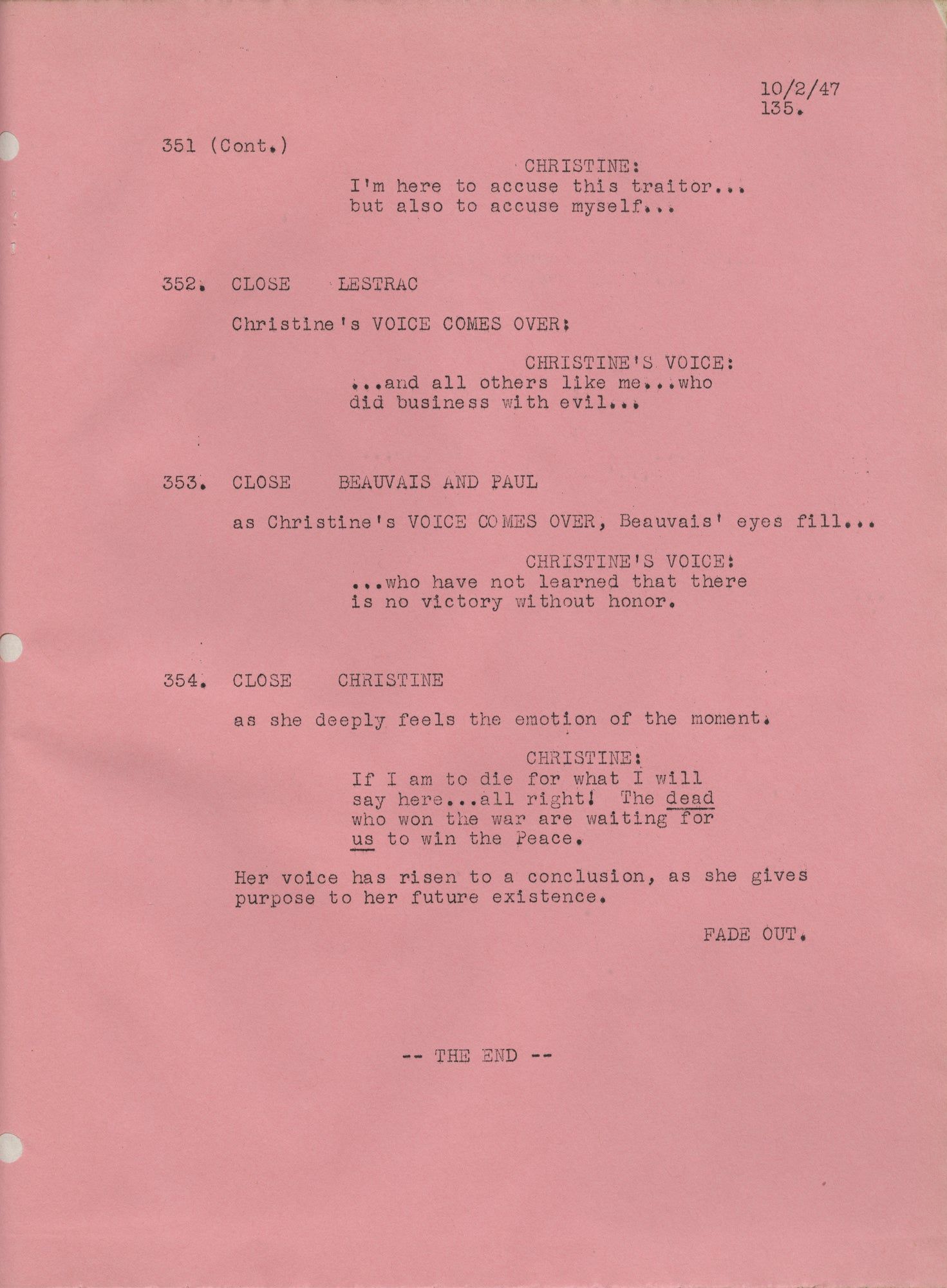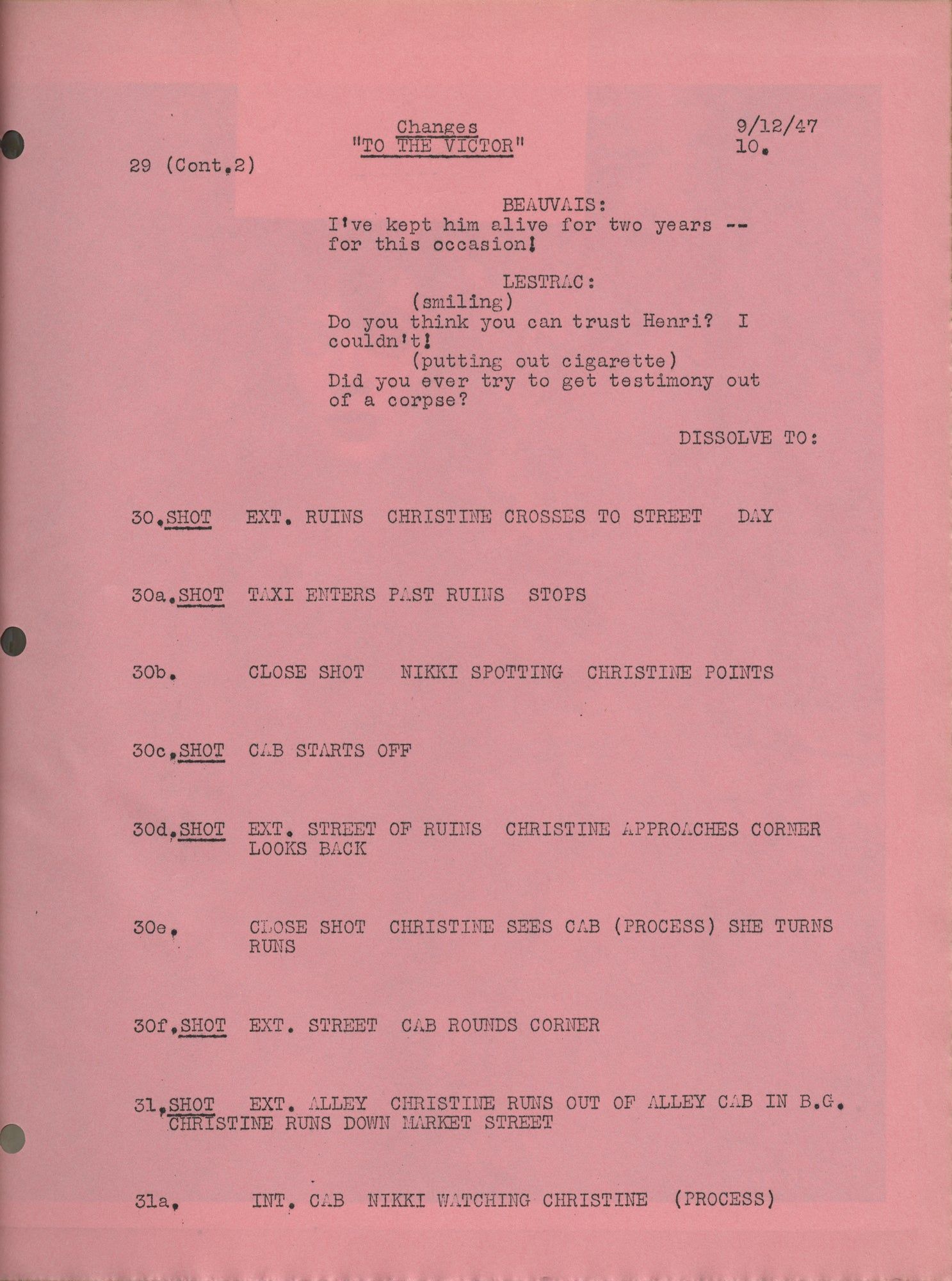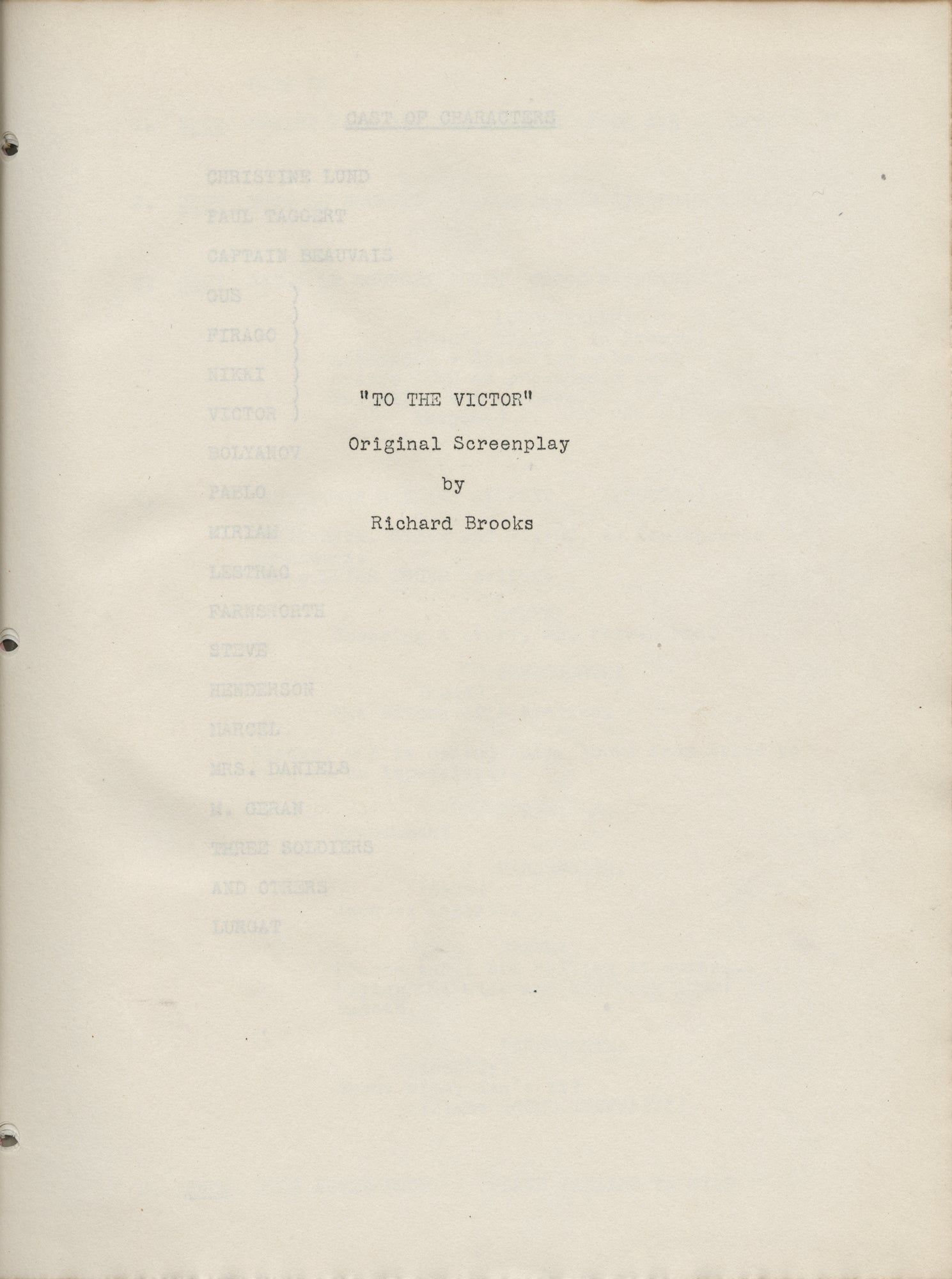 To the Victor (Original screenplay for the 1948 film, presentation copy belonging to producer Jerry Wald)