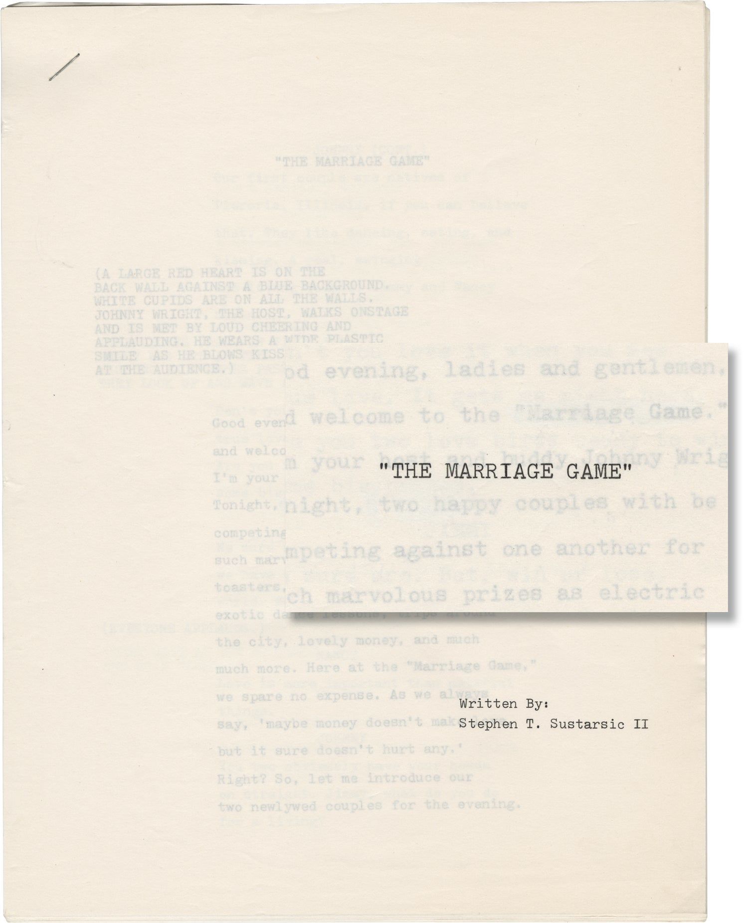 Front wrapper integral with title page, with credits for screenwriter Stephen T. Sustarsic II. 27 leaves, with last page of text unnumbered. Ribbon typescript copy, rectos only. Pages Near Fine, bound with a single staple to the upper left corner.
