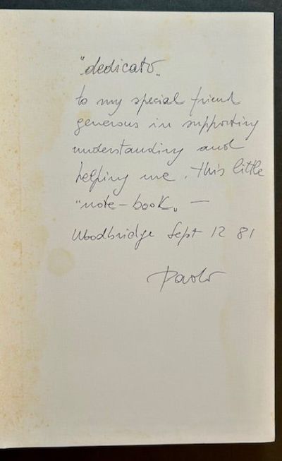 Edizioni Pre-Art, 1976. Pictorial wrappers. Very Good. WARMLY INSCRIBED BY THE ARTIST, PAOLO ICARO, on the front free endpaper. A solid copy to boot of the 1976 1st edition. Tight and VG in its pictorial wrappers, with light spotting along the spine and at the rear panel. Octavo, text in both English and Italian.