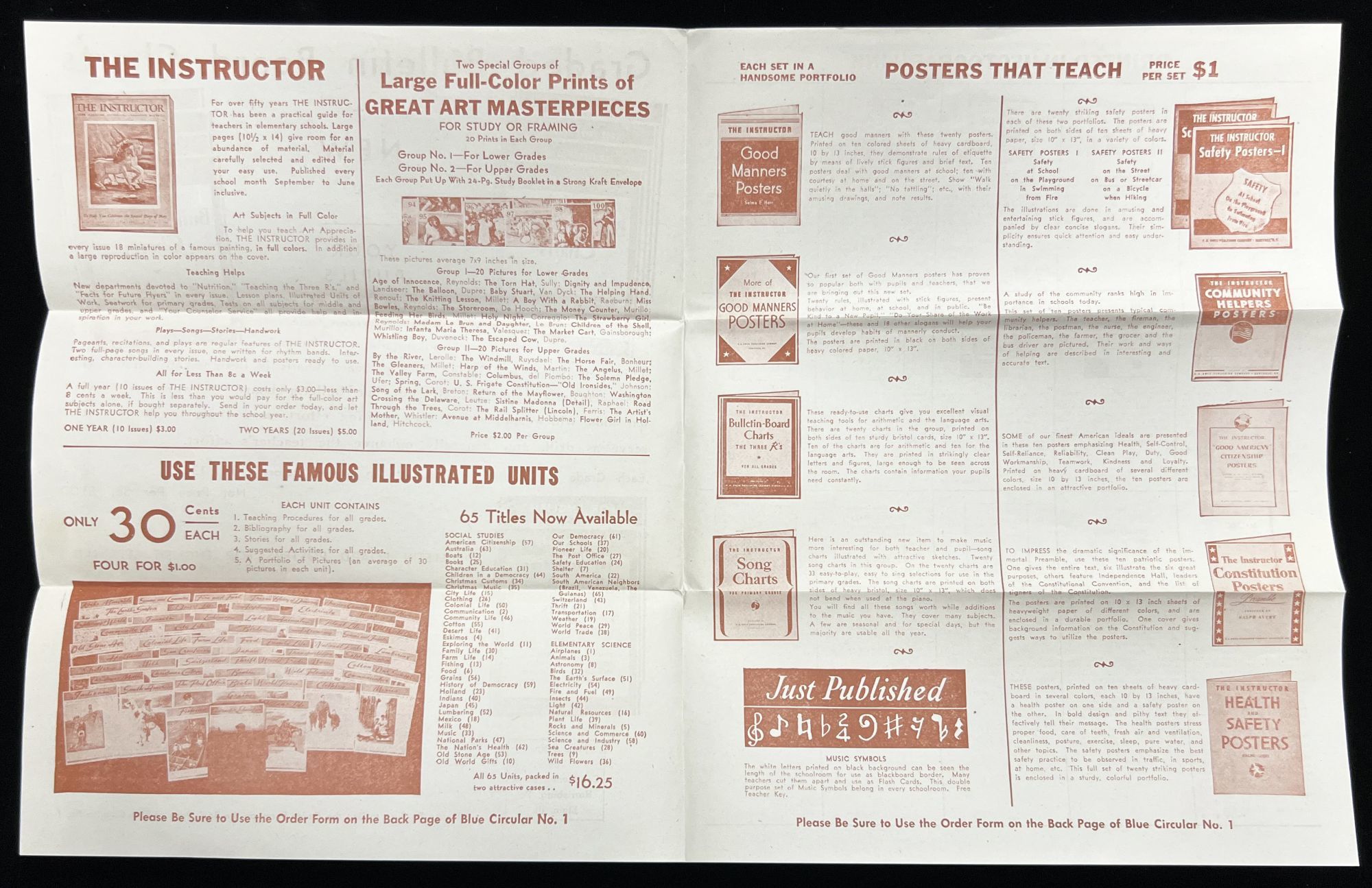 Three (3) Circulars Advertising Textbooks, Workbooks, and Classroom Ephemera for the 1940s Educator by the Continental Press