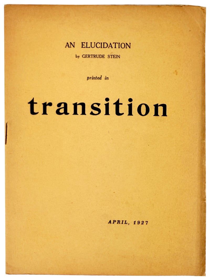 An Elucidation by Gertrude Stein printed in transition. April, 1927 [wrapper title]