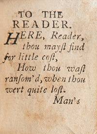 There are four other recorded copies of this book: at the Morgan Library (PML81221, lacking all half title and titles and other leaves); at AAS (the Welch Stone copy lacking the half title and six pages of the Old Testament); at the Boston Public library (rebound); and at the Lilly Library (bibliographer Ruth Adomeit’s copy, in the original binding lacking the first leaf).