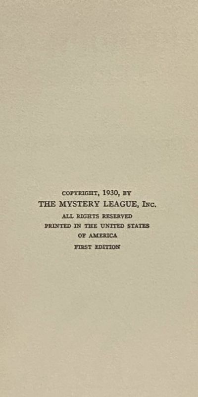 - New York: The Mystery League, Inc, 1930