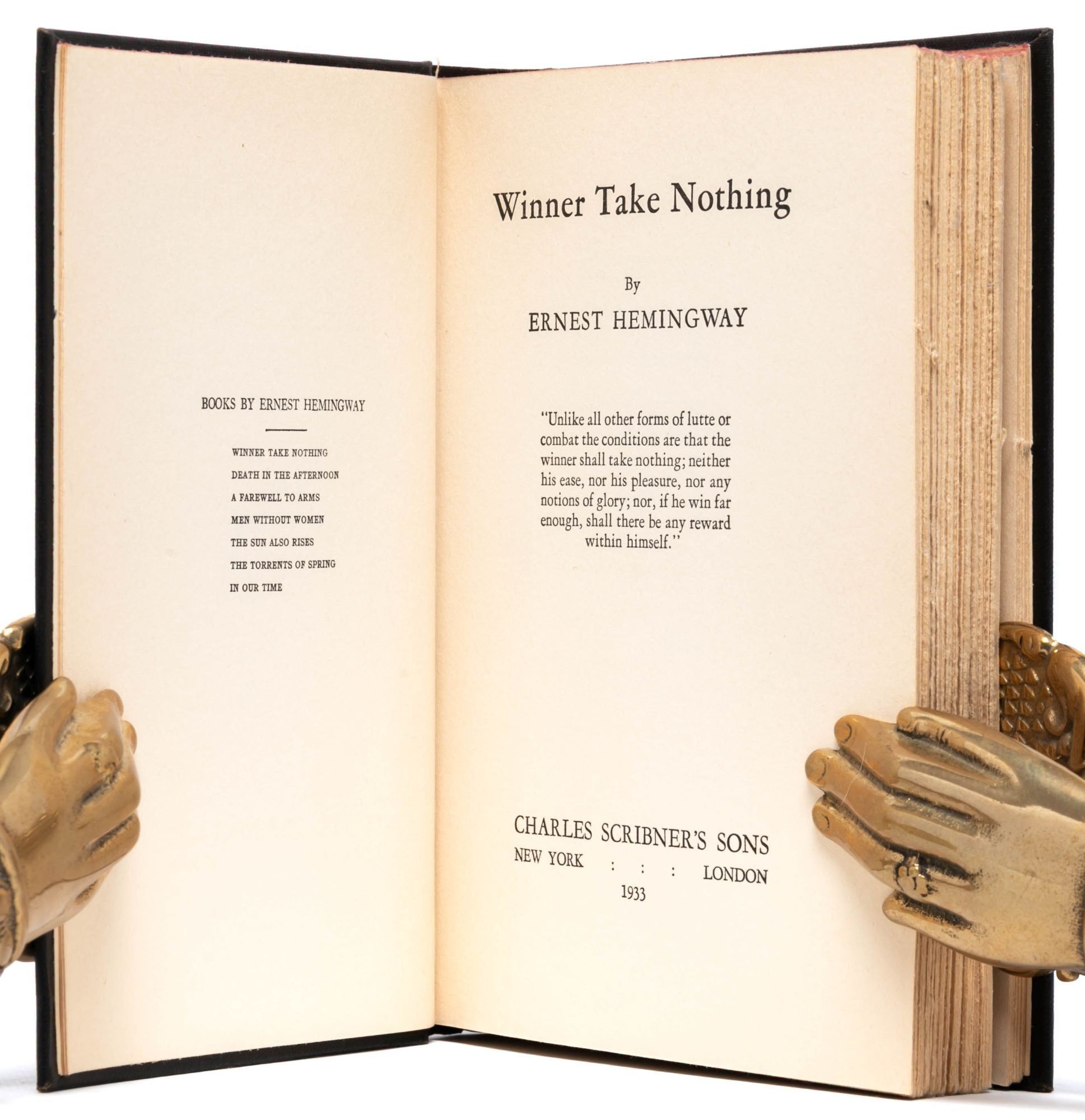 “There are two stories that show a sudden expansion of Hemingway’s range, yet both are beautifully simplified and pure. These are 'Wine of Wyoming' and 'The Gambler, the Nun, and the Radio'” (contemporary New York Herald review). Fine in Near Fine dust jacket.