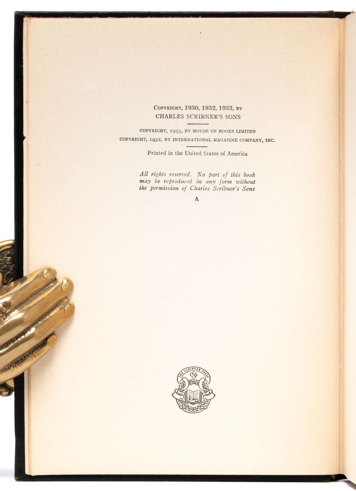 New York: Charles Scribner's Sons, 1933. First edition. Fine/Near Fine. First printing with "A" on copyright page and Stallings review on the rear dust jacket panel. A Fine copy in Near Fine dust jacket. Jacket with a short (one inch) tear at the top of the rear panel and just slight wear at the crown and extremities. Spine a trifle faded, but a handsome copy overall.
